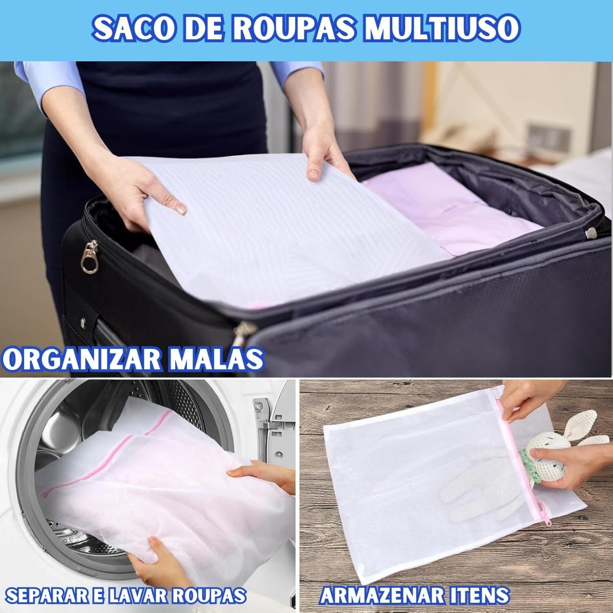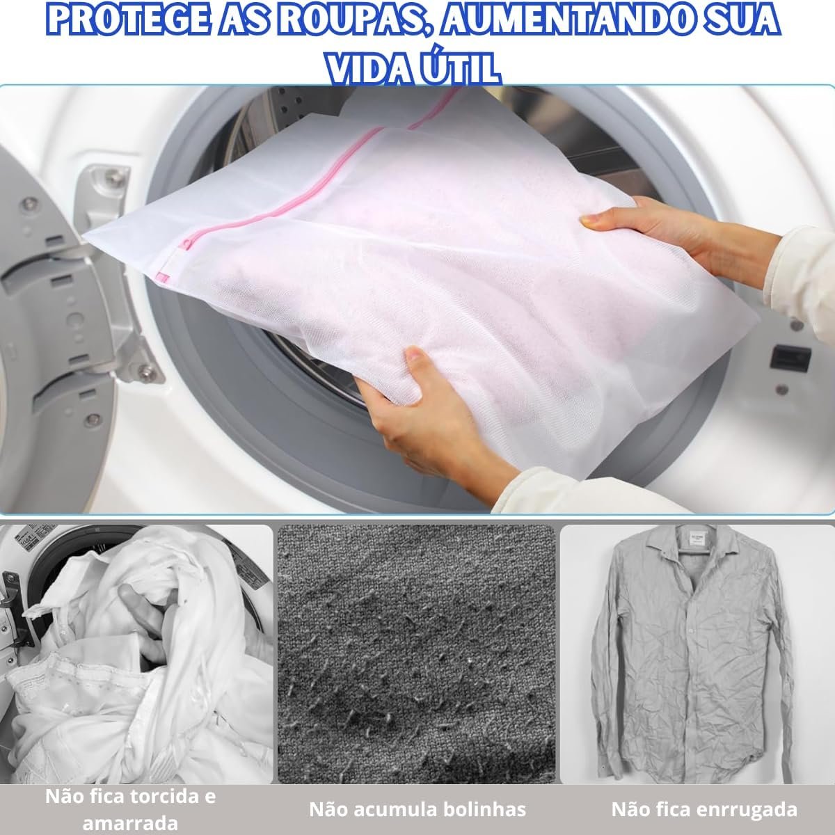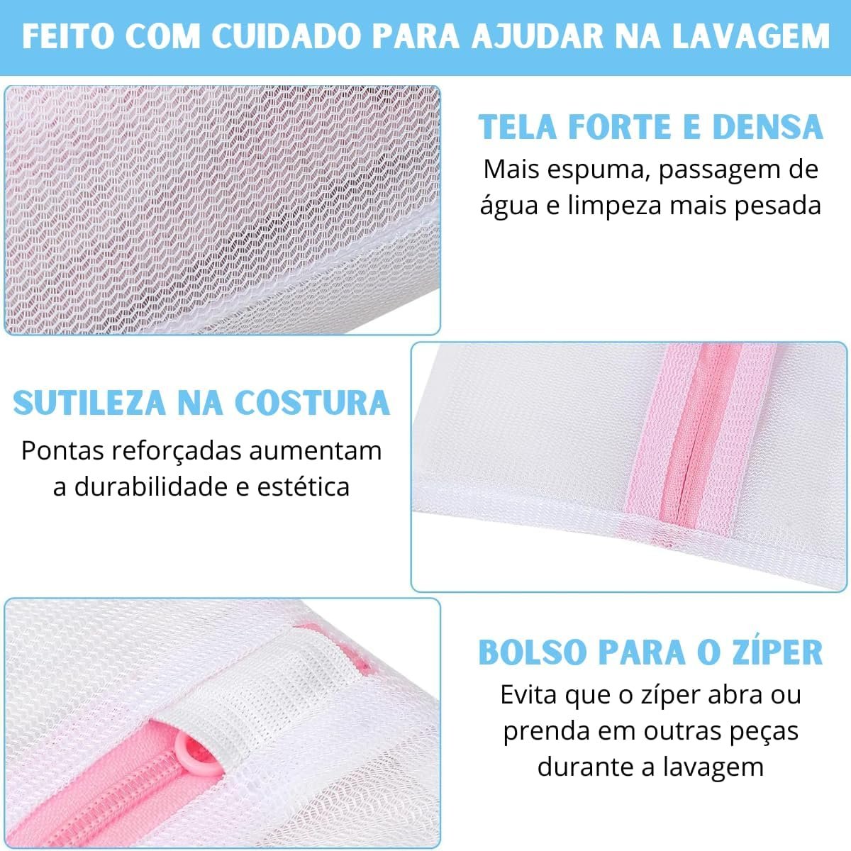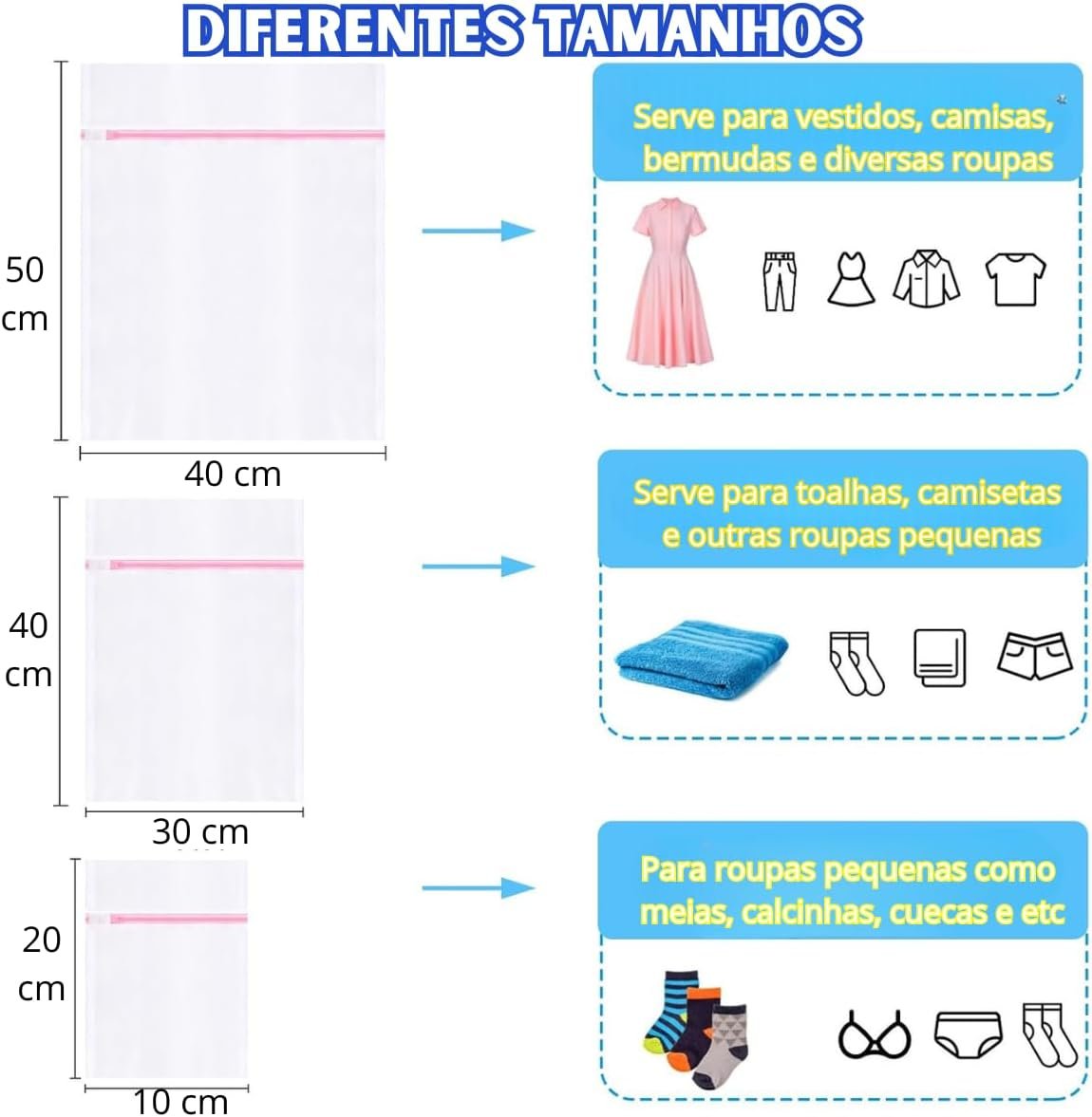 Kit 6 Sacos Para Lavar Roupa Máquina De Lavar Saquinho Para Roupas Delicadas Protetor Roupa Íntima Sutiã Bolsa De Malha Tamanho P, M, G | Premium MyBrins