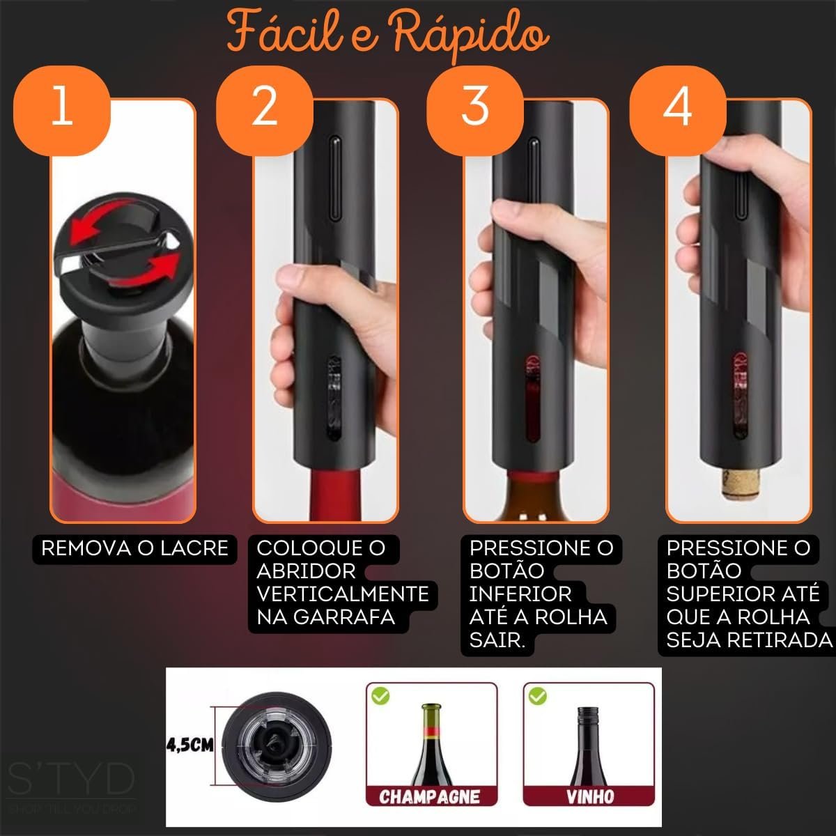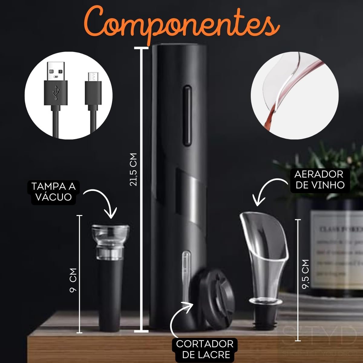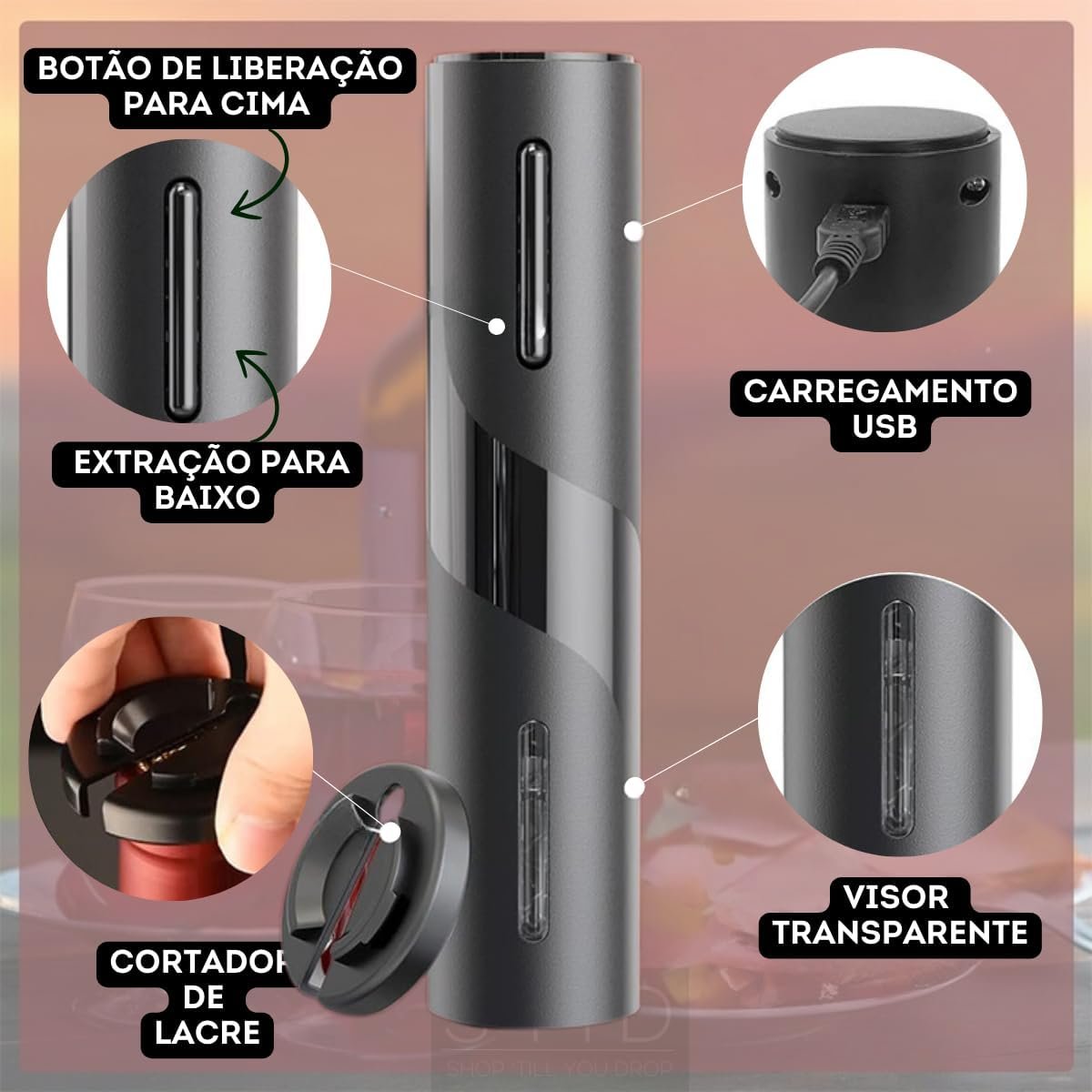 Kit Abridor de Vinho Elétrico Recarregável USB, com Cortador de Papel Alumínio, Derramador de Vinho e Rolha à Vácuo, Saca-rolhas Automático, Ótima Opção de Presente, Qualidade Premium