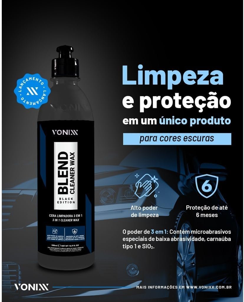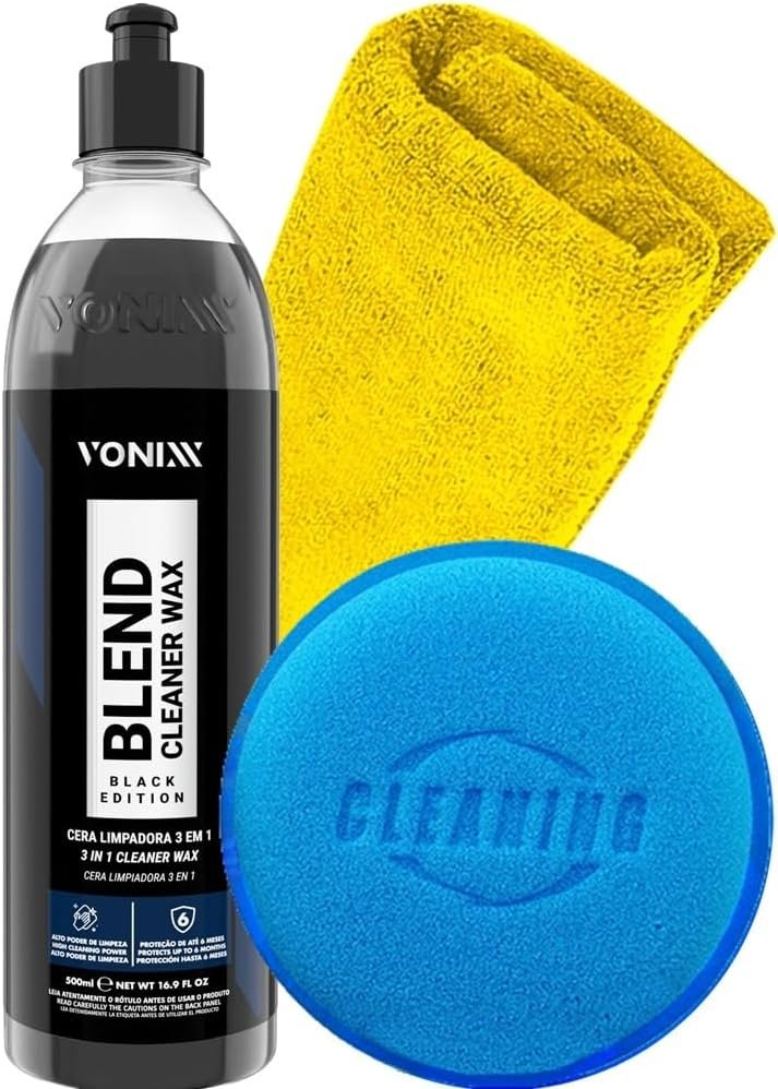 Kit Automotivo Blend Cleaner Wax Black Edition 500ml para Carros Escuros Vonixx Acessórios Aplicador Toalha Karbox