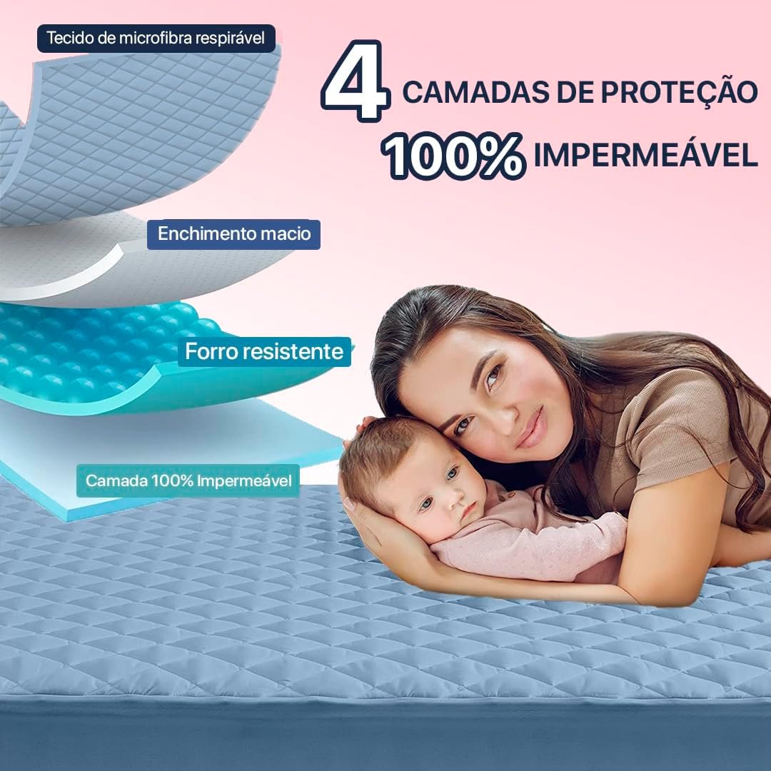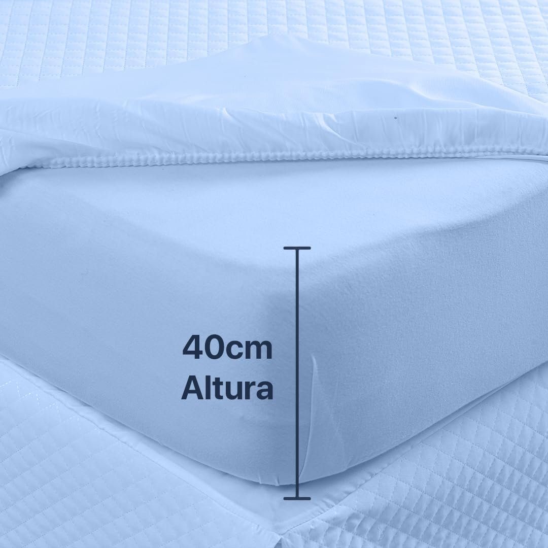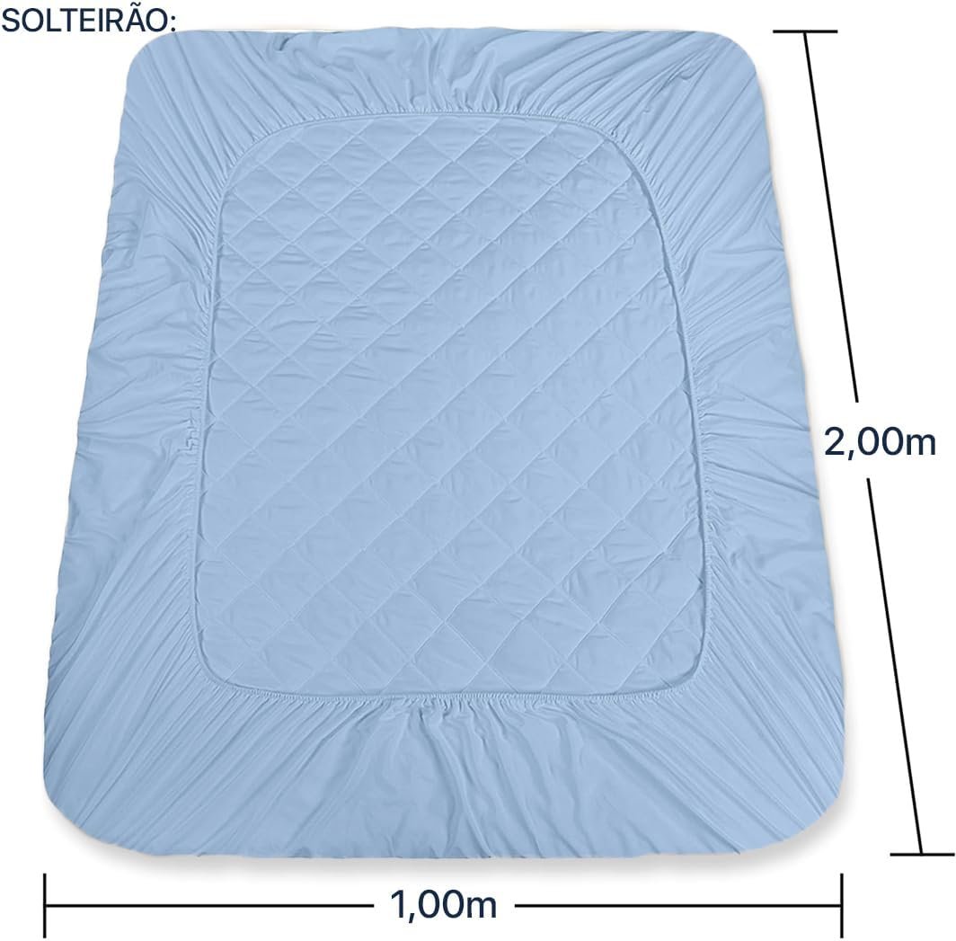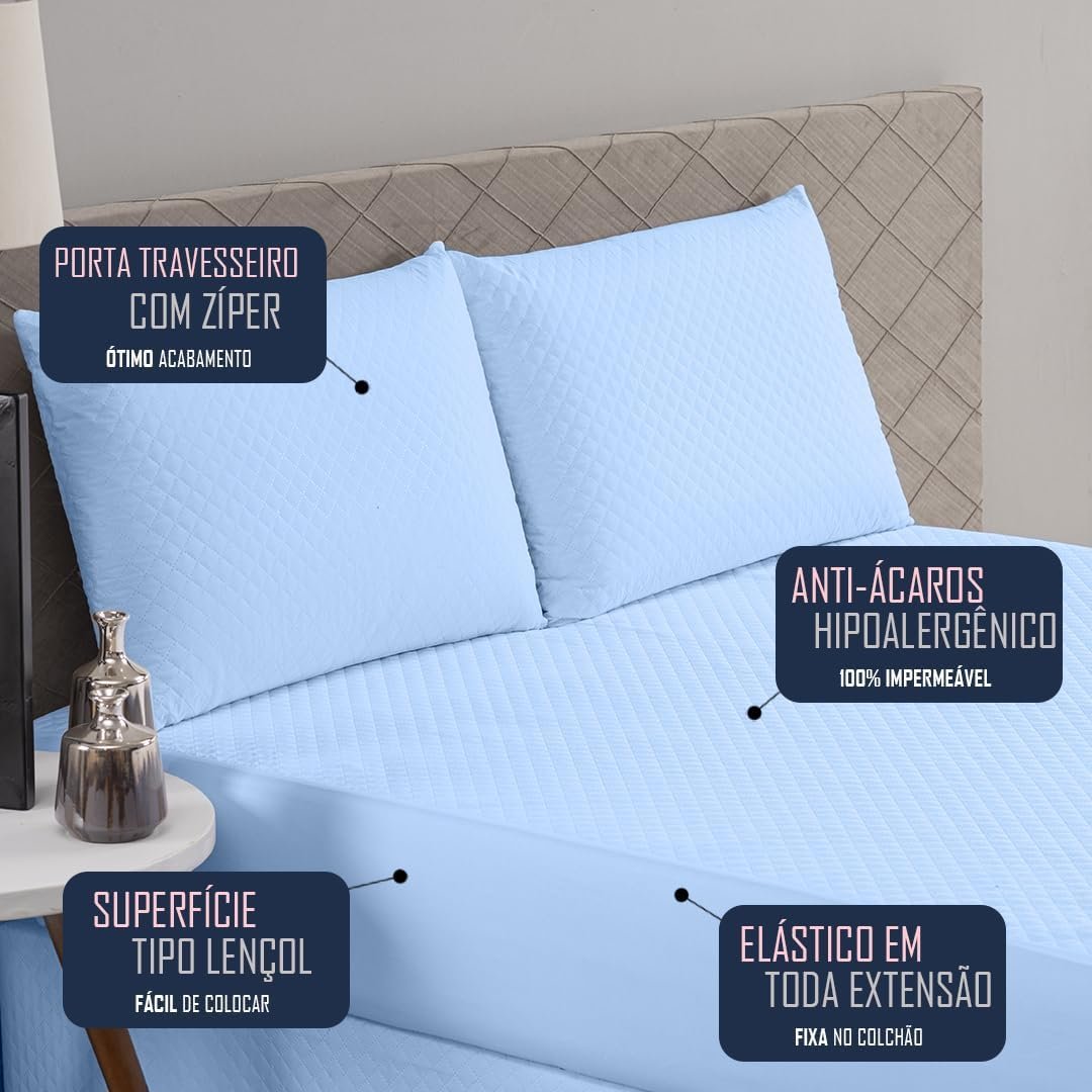 Kit Capa Impermeável Protetora para Colchão + Protetore de Travesseiro Impermeável – 4 Camadas de Proteção – Respirável e Não faz barulho (Azul, Solteirão)