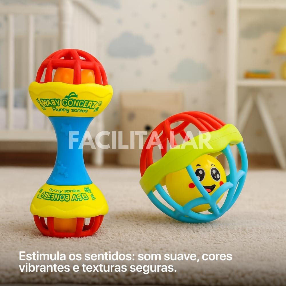 Kit Chocalho para Bebê 8 Peças – Brinquedo Educativo Sensorial Mordedor Infantil Colorido