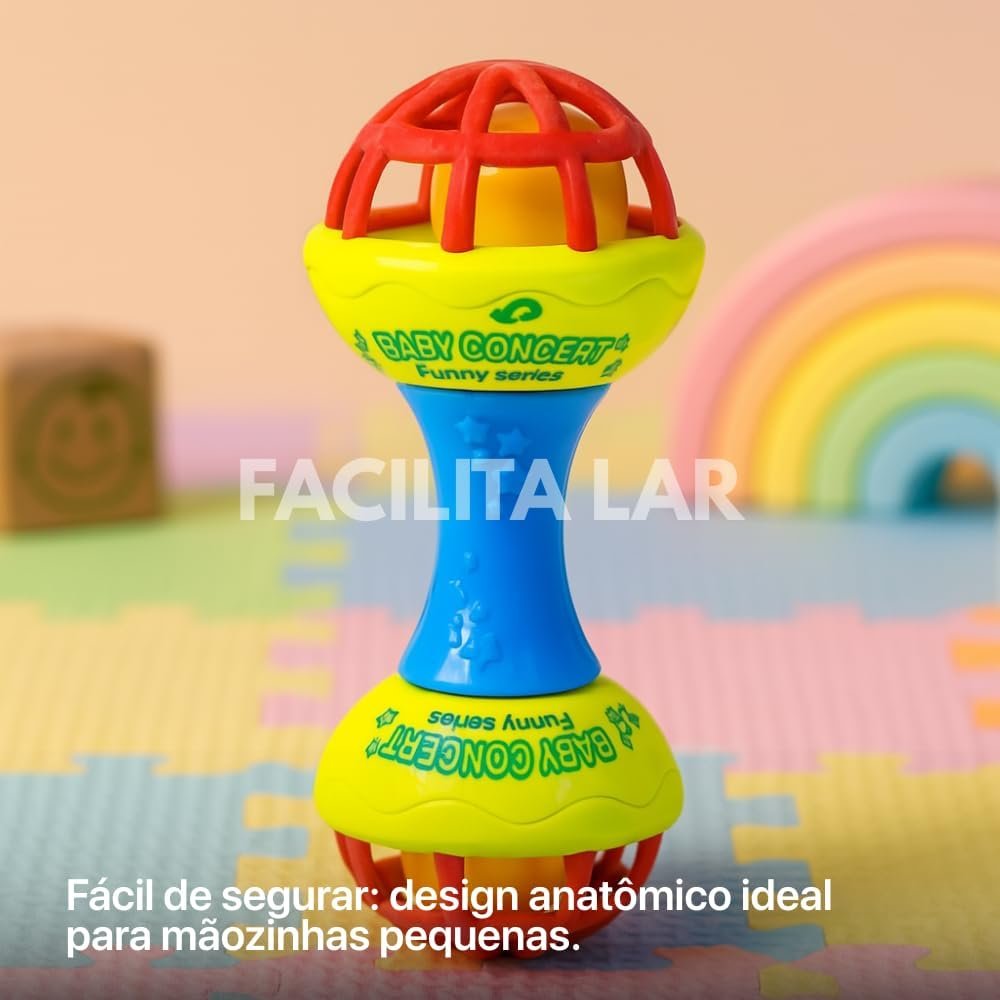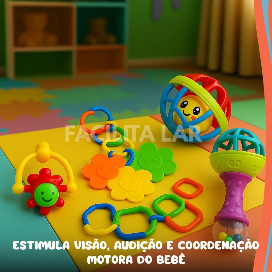 Kit Chocalho para Bebê 8 Peças Brinquedo Educativo Sensorial Mordedor Infantil Colorido Desenvolvimento Motor
