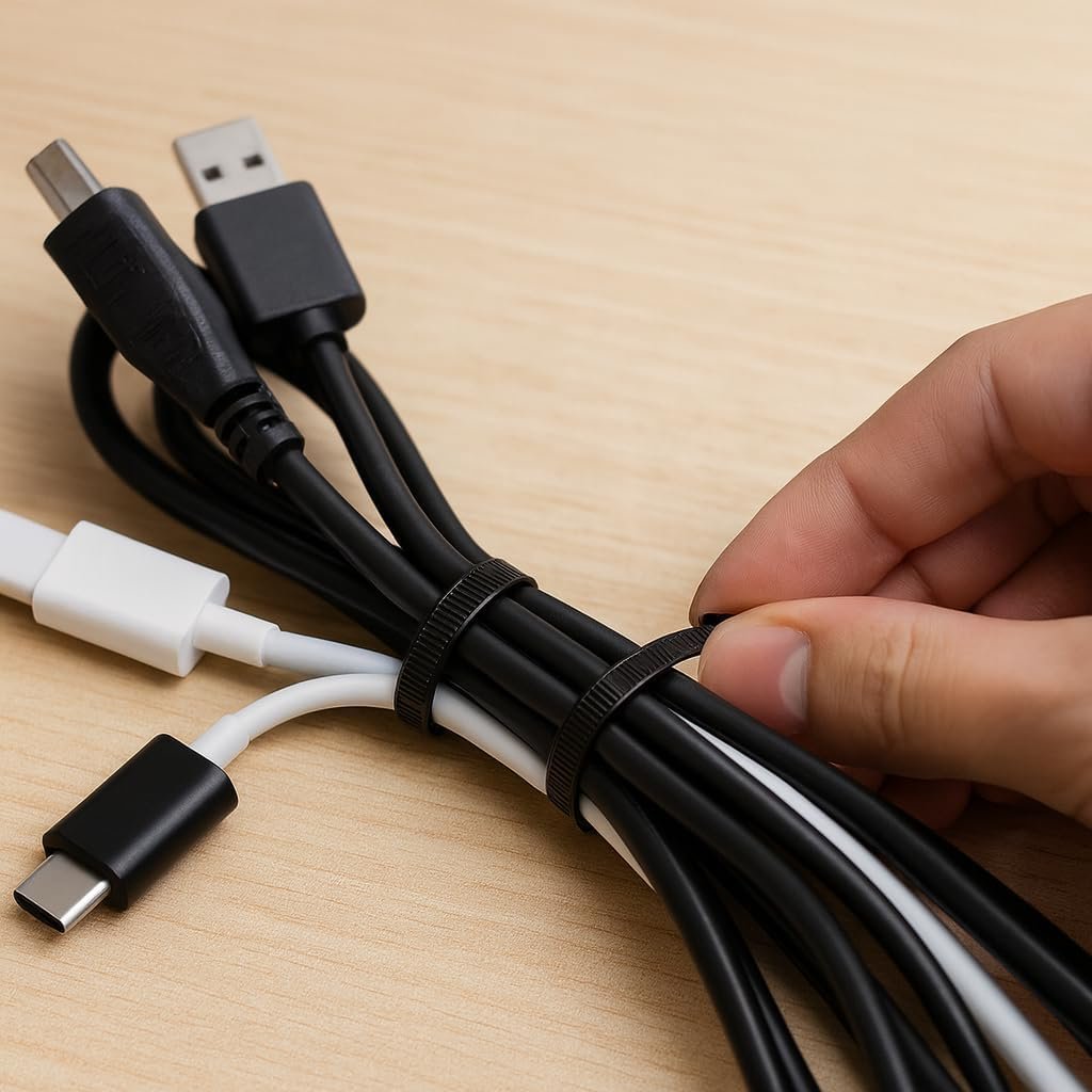 Kit com 100 Unidades Abraçadeira de Nylon 4,8 x 200mm Tamanho Grande Preta – Enforca Gato Reforçado – Organizador de Cabos, Fios e Mangueiras – Uso Profissional