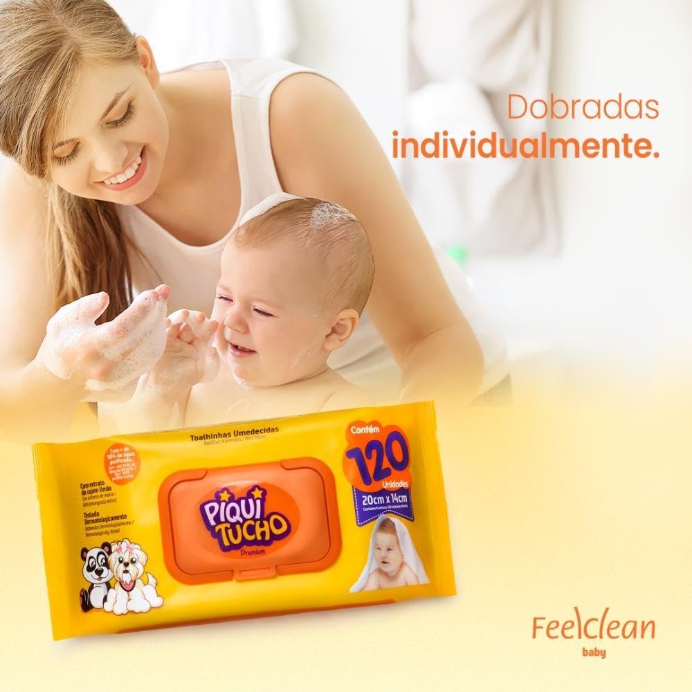 Experimente a praticidade e suavidade dos Lenços Umedecidos Piquitucho! Com um total de 1.440 lenços em 12 pacotes de 120 unidades cada, você terá a solução perfeita para manter a higiene do seu bebê em qualquer lugar.