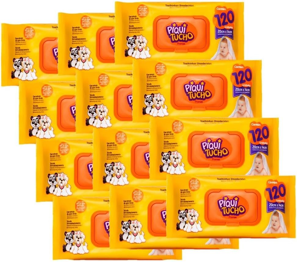 Kit com 12 Pacotes de Lenços Umedecidos Piquitucho 120 Unidades Cada – Total 1.440 Lenços – Hipoalergênicos, Sem Álcool, Com Aloe VeraKit com 12 Pacotes de Lenços Umedecidos Piquitucho 120 Unidades Cada – Total 1.440 Lenços – Hipoalergênicos, Sem Álcool, Com Aloe Vera