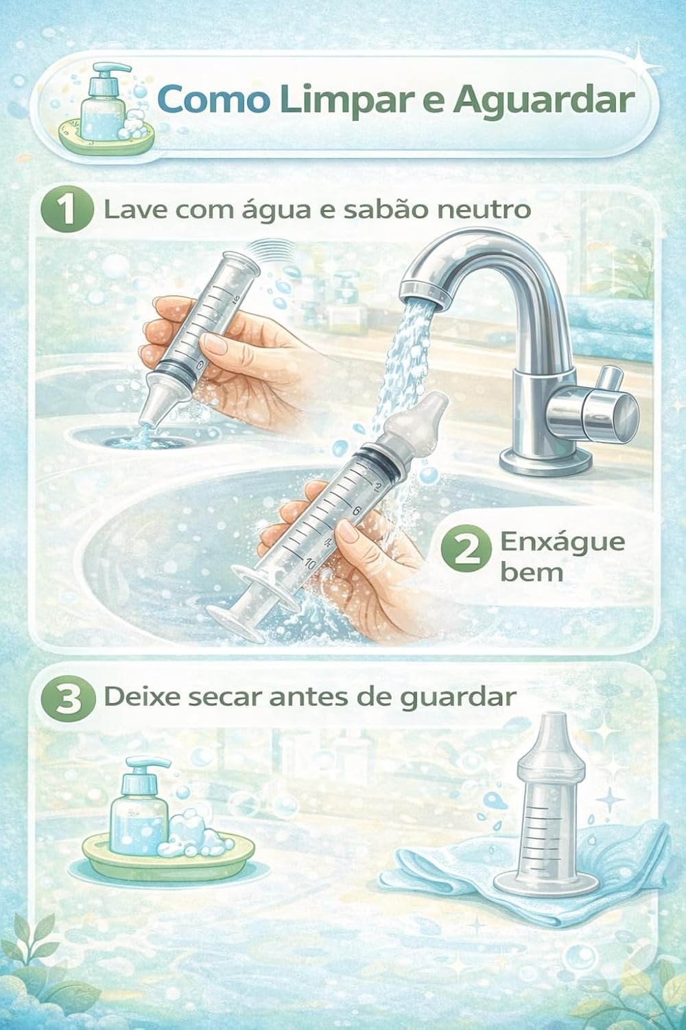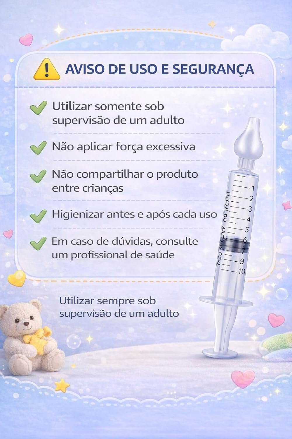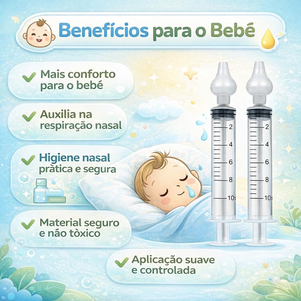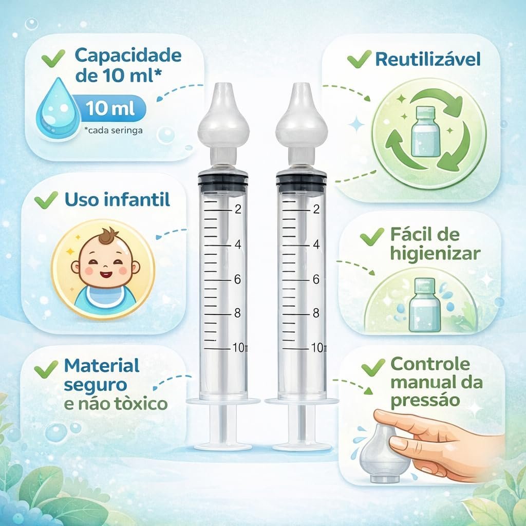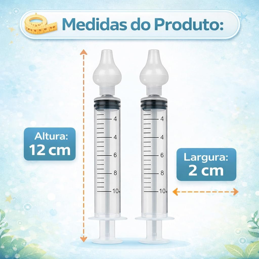Kit com 2 Seringas de Sucção Nasal para Bebês 10ml Lavagem e Higiene Nasal Infantil, Limpeza Suave do Nariz, Reutilizável e Fácil de Usar (2)
