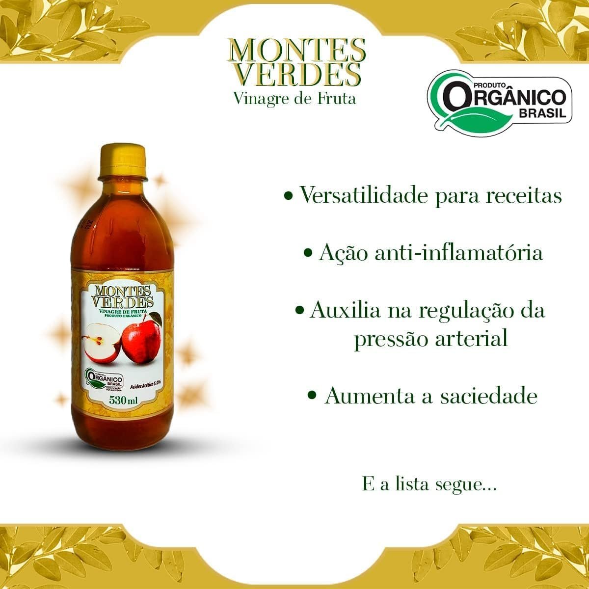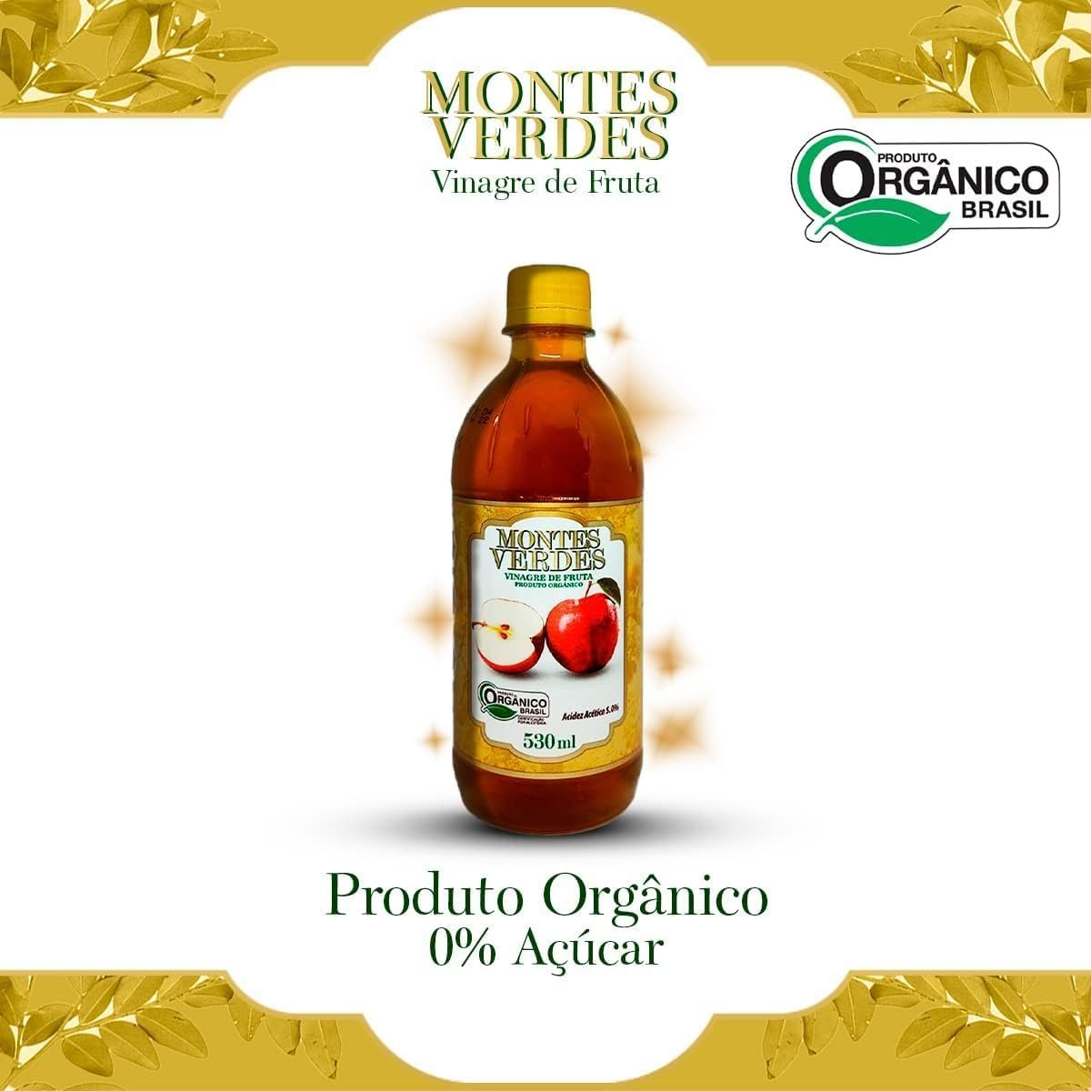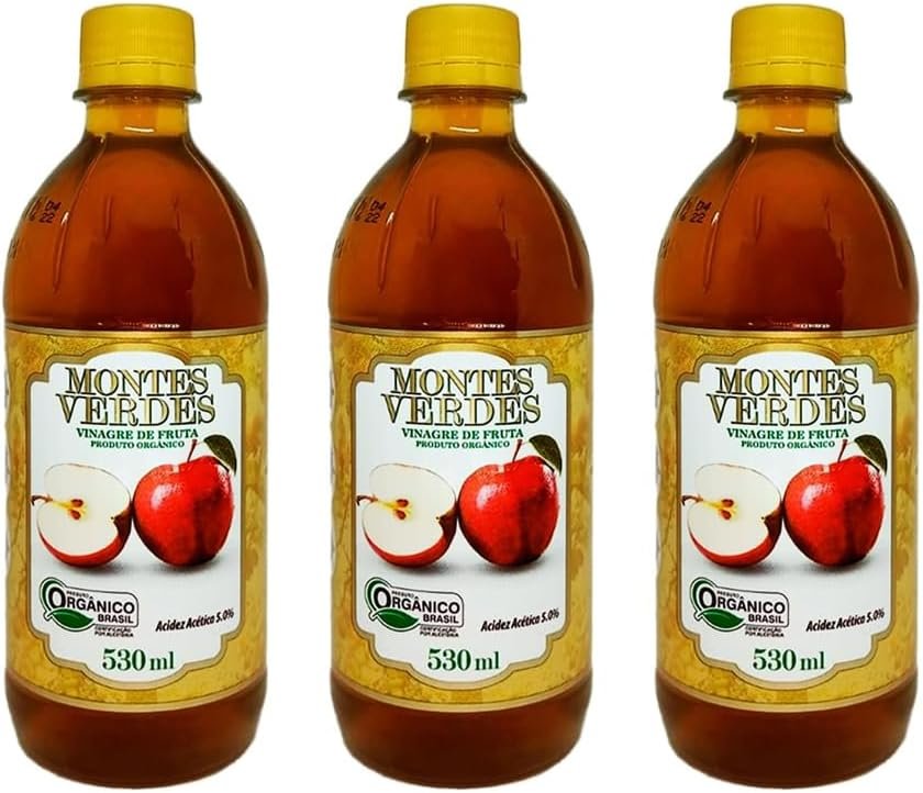 Kit com 3 Vinagre Orgânico de Maçã 530ml 5% De Acidez Puro 530ml Vinagre Montes VerdesKit com 3 Vinagre Orgânico de Maçã 530ml 5% De Acidez Puro 530ml Vinagre Montes Verdes