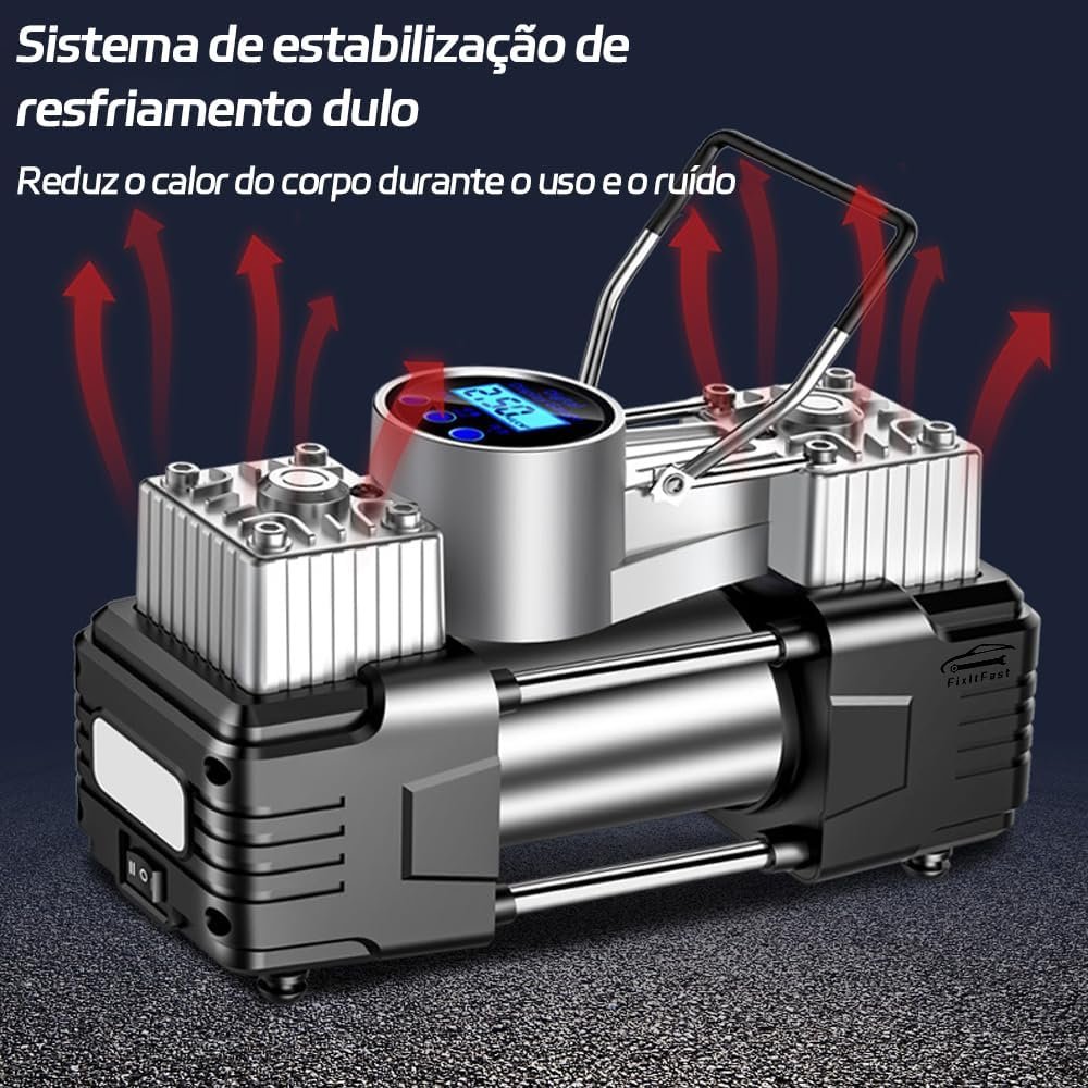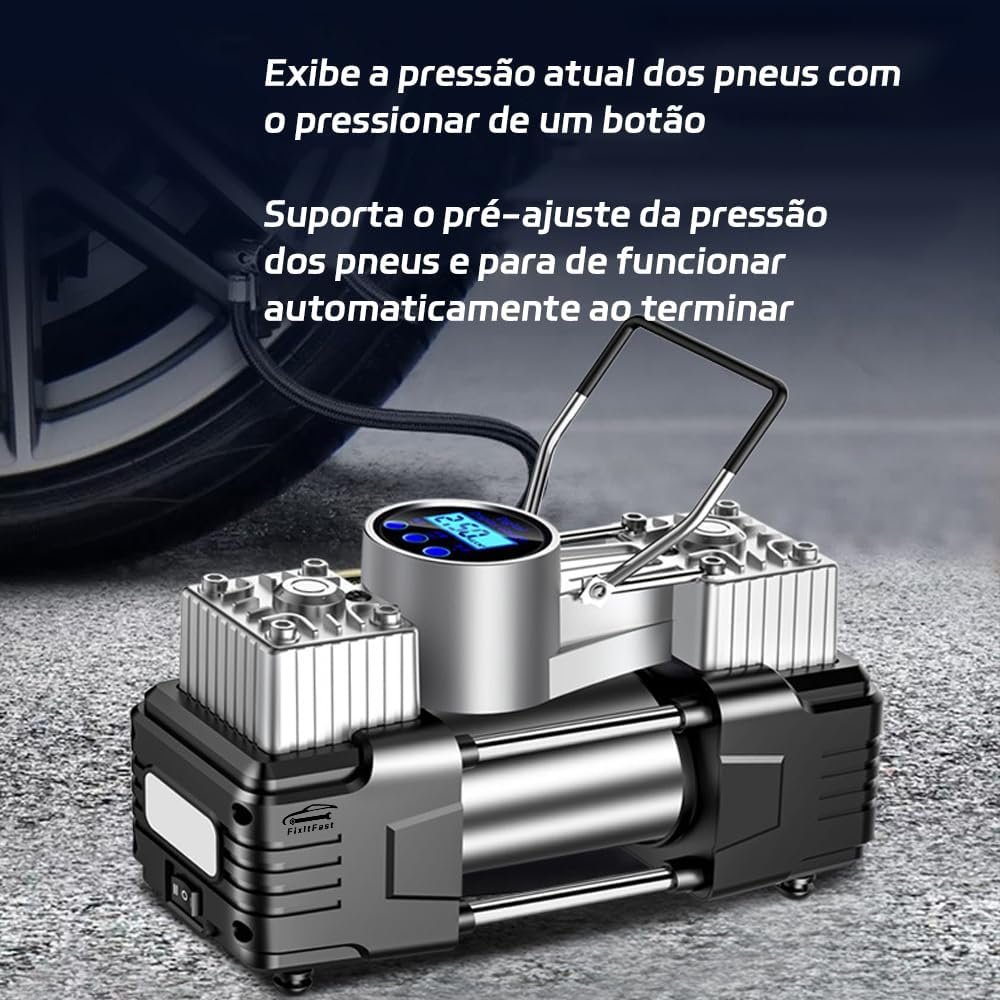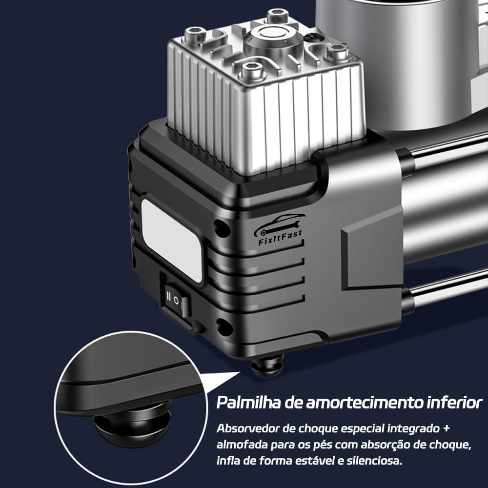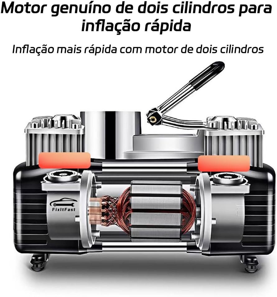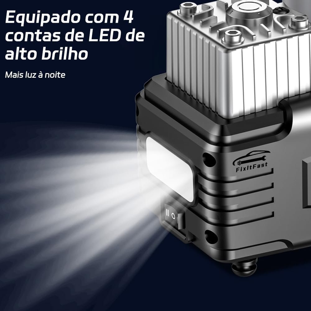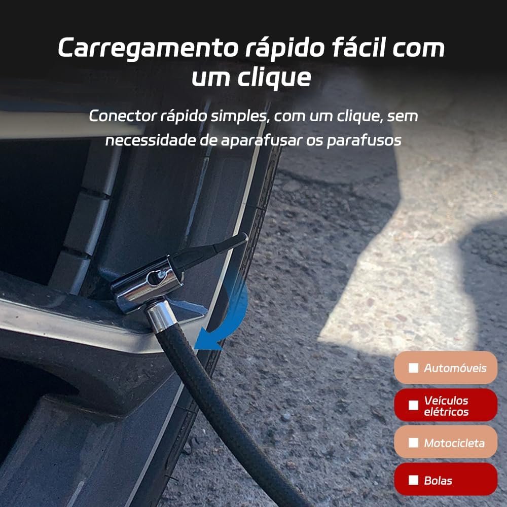 Kit Compressor De Ar Portátil 12V, 100 PSI, LED, Desligamento Automático, Inflação Rápida (3-4 Minutos), Multiuso para Carros, SUVs, Bicicletas, Motos e Infláveis