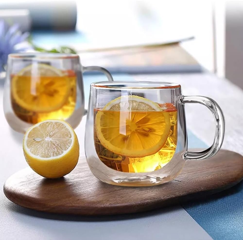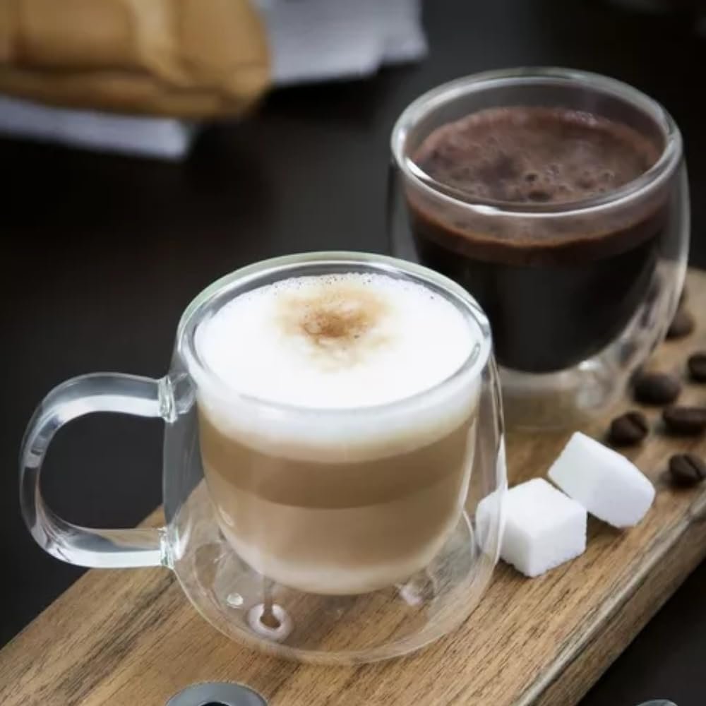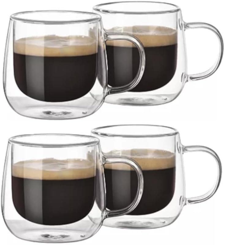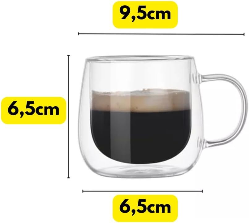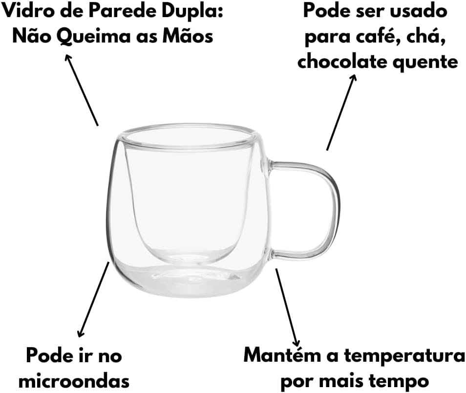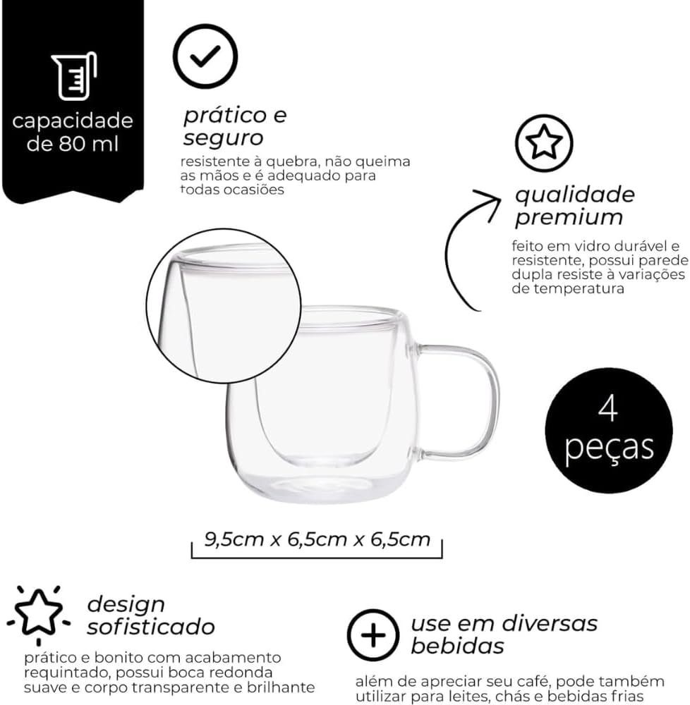 Kit Conjunto Com 04 Xícaras De Café Parede Dupla Vidro Borossilicato Capacidade De 80ml Resistente A Altas Temperaturas Não Queima As Mãos Design Sofisticado MAGIC UTILIDADES