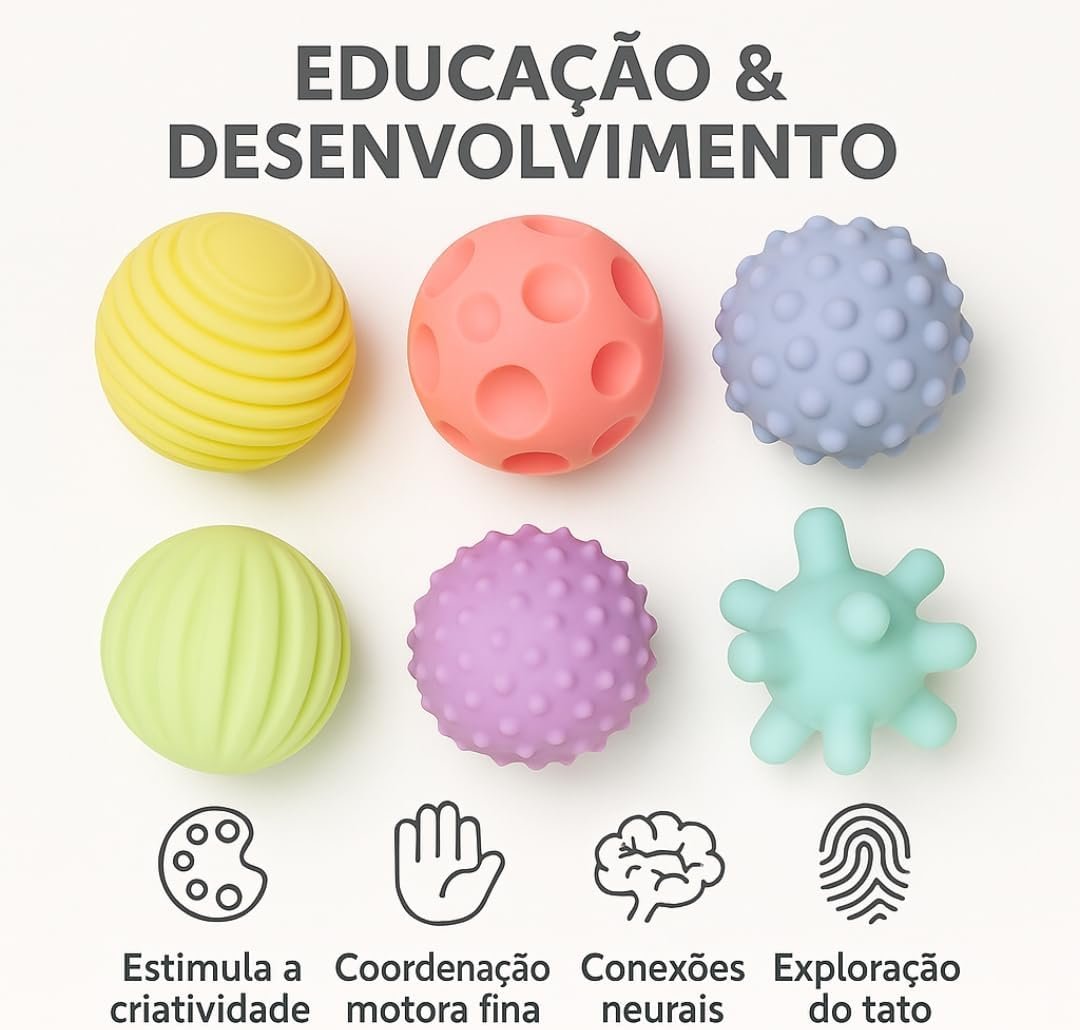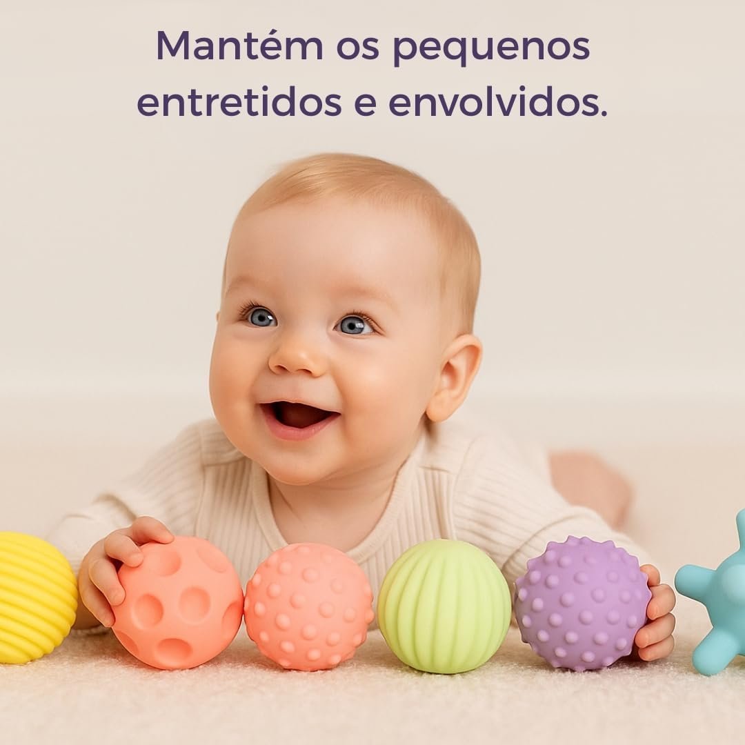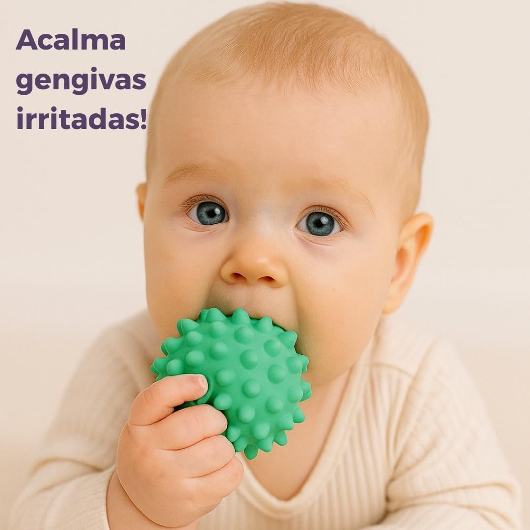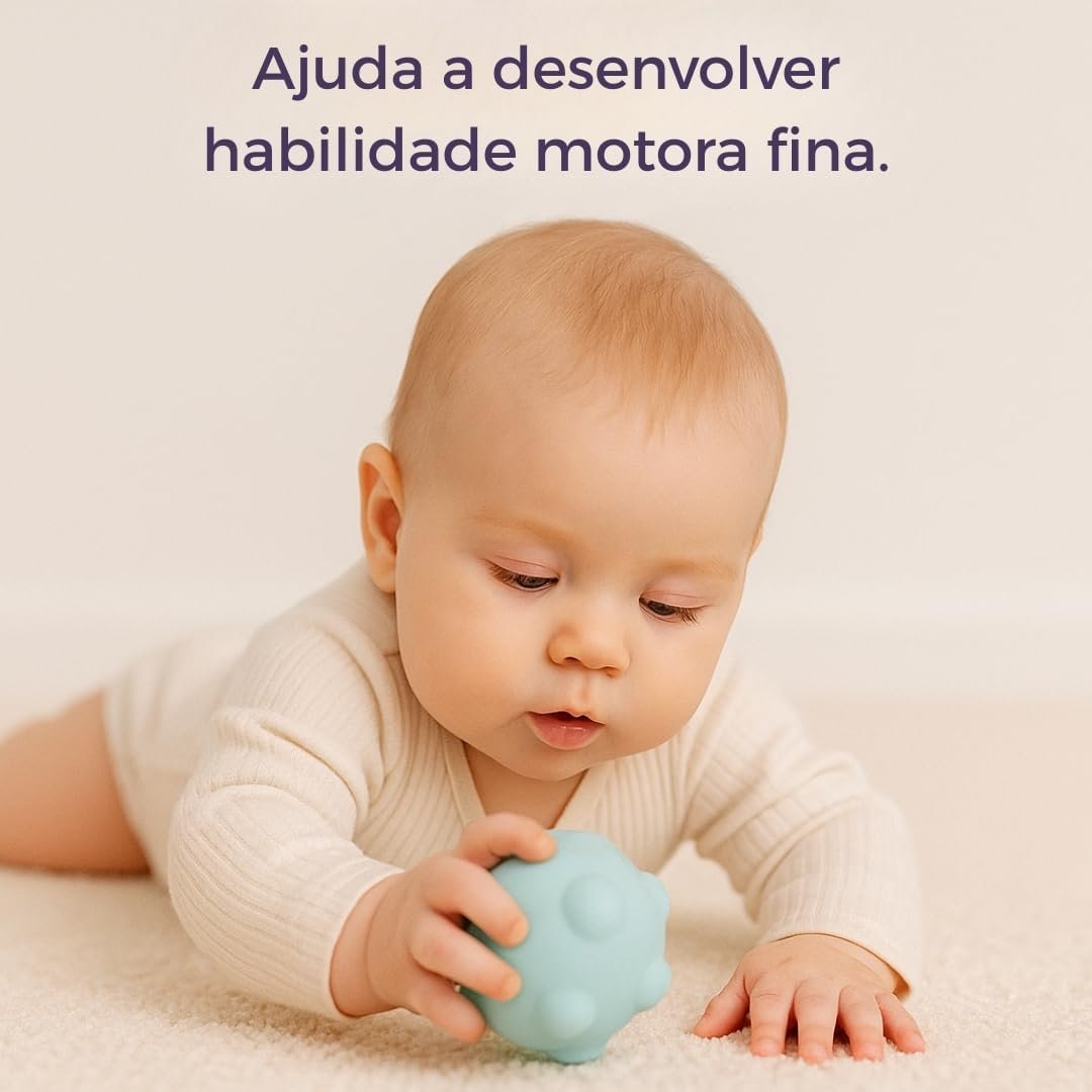 Kit de Bolas Sensoriais para Bebê – Texturas Educativas, Estímulo Motor e Cores Suaves – Silicone Macio Atóxico – Aprendizado e Diversão a Partir de 3 Meses
