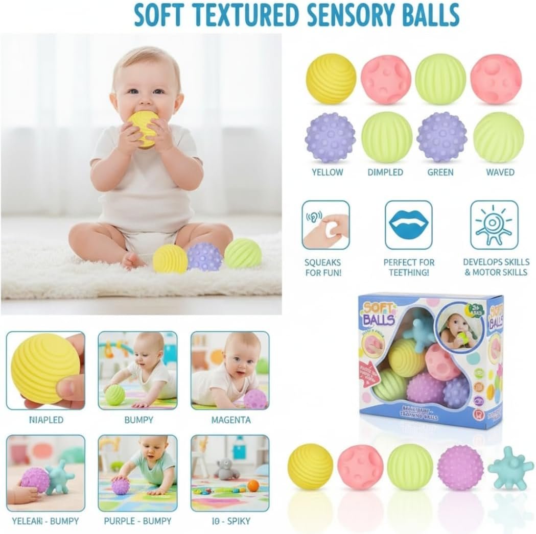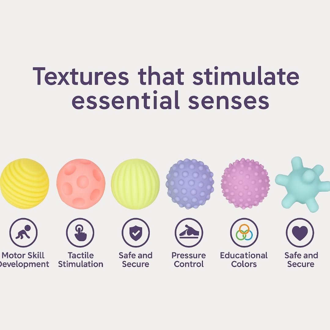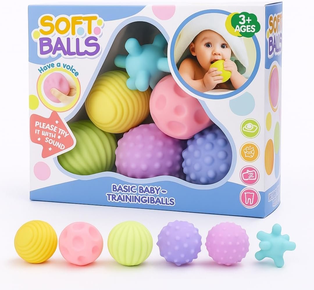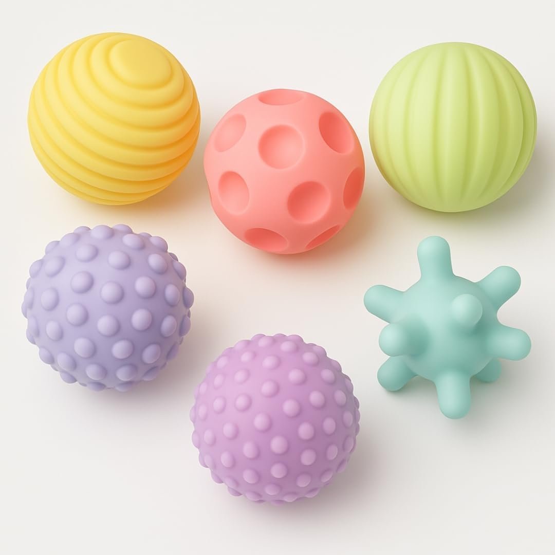 Kit de Bolas Sensoriais para Bebê – Texturas Educativas, Estímulo Motor e Cores Suaves – Silicone Macio Atóxico – Aprendizado e Diversão a Partir de 3 Meses