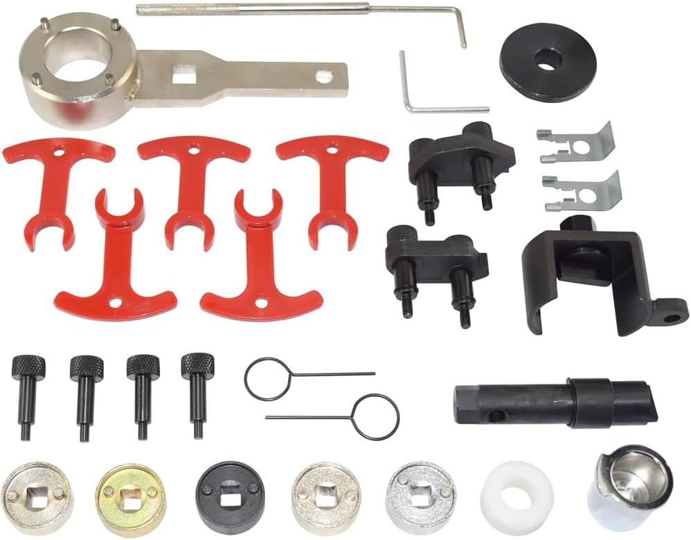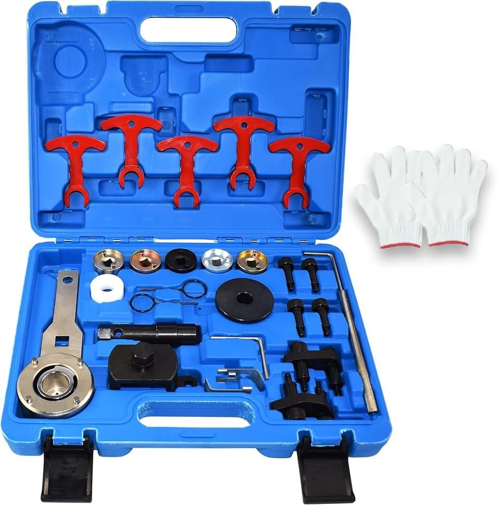 Kit de Ferramentas de Sincronismo do Motor Virabrequim e Árvore de Cames – Compatível com VW/Audi 1.8 2.0 TSI TFSI – 28 Peças para Reparo Profissional – Inclui Estojo e Luvas