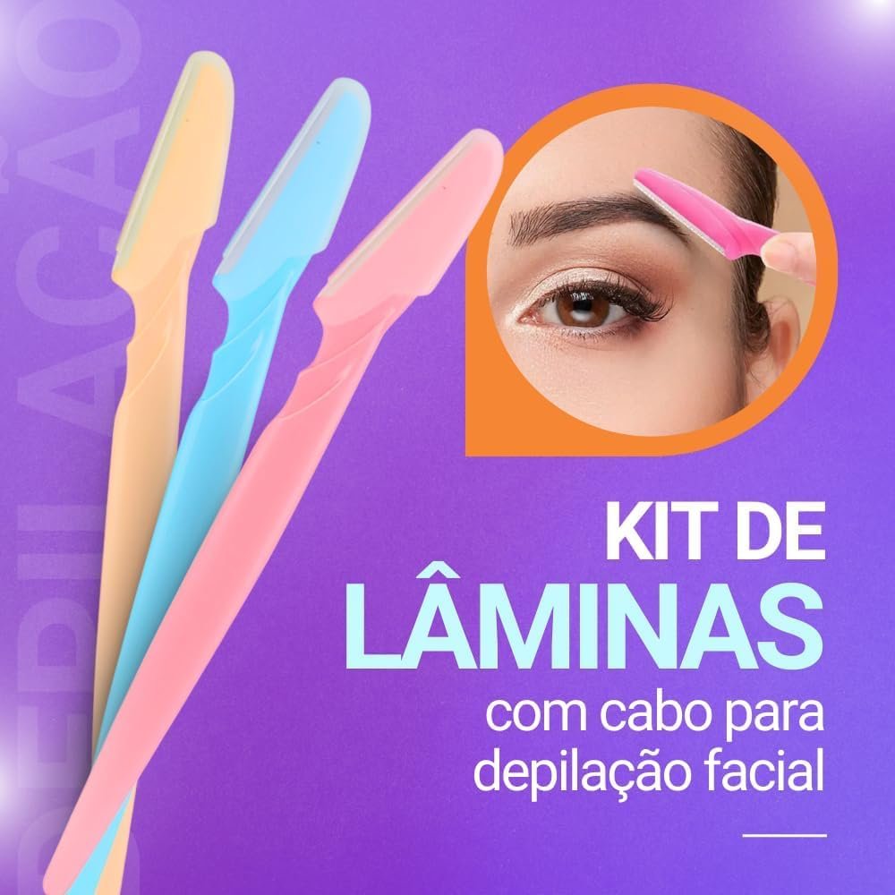 Kit de Navalha Lâminas Ferramentas de Depilação Esfoliante + Capa de Precisão – Sobrancelhas e Rosto
