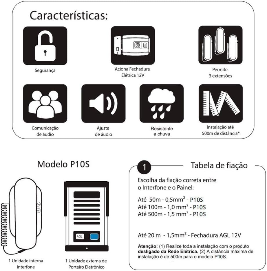 Kit Interfone Porteiro Eletrônico AGL P10 S – Alimentação Externa