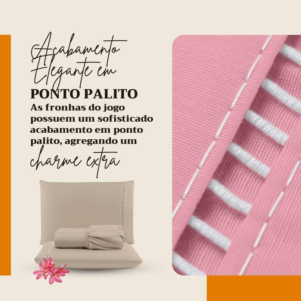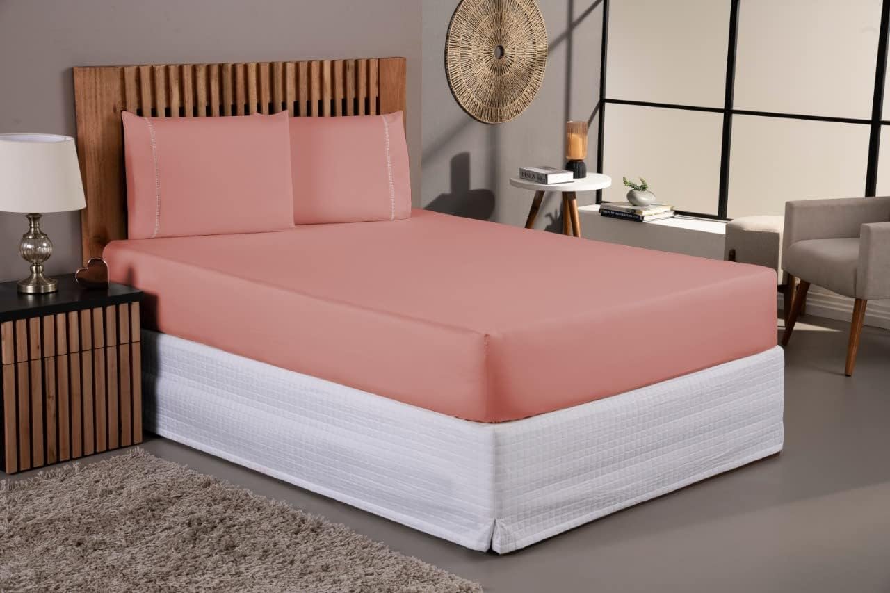Kit Jogo De Lençol 400 Fios Percal Poliéster Liso Toque Macio com Elástico Diversos Tamanho Solteiro Casal Queen King Size (Rose, Queen)