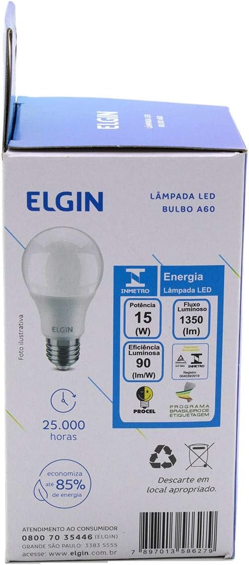 Kit Lampada led 15W 6500k Branco Frio Bivolt – Elgin – 5 Unidades