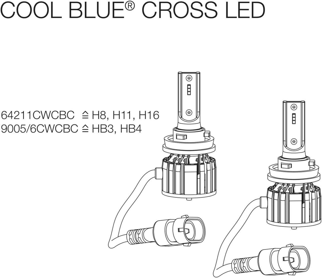 KIT LED COOL BLUE CROSS H8/H11/H16 OSRAM – 64211CW CBC – Potência 23W – Tensão 12V – 2 anos de Garantia – 6000K Branca Azulada