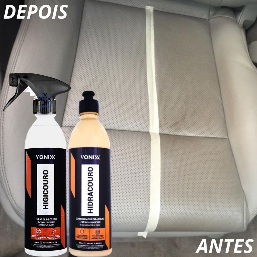 Título do Produto: Kit Limpeza e Hidratação de Couro Vonixx – Ideal para Limpar e Hidratar Bancos, Jaquetas e Acessórios de Couro