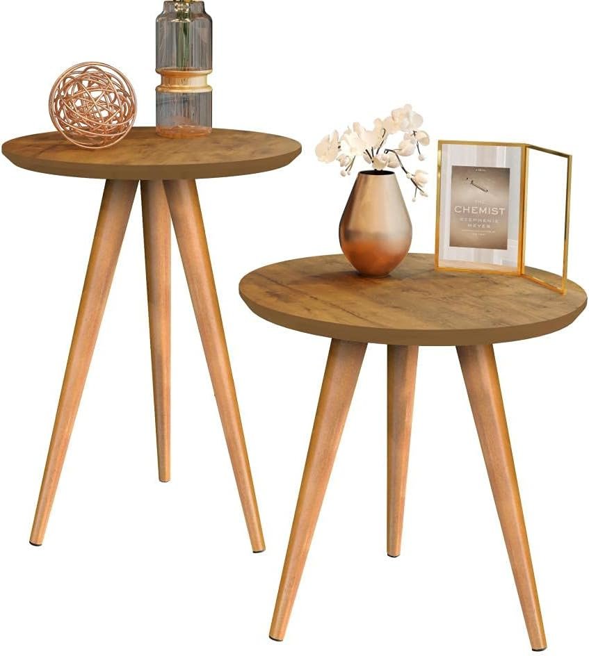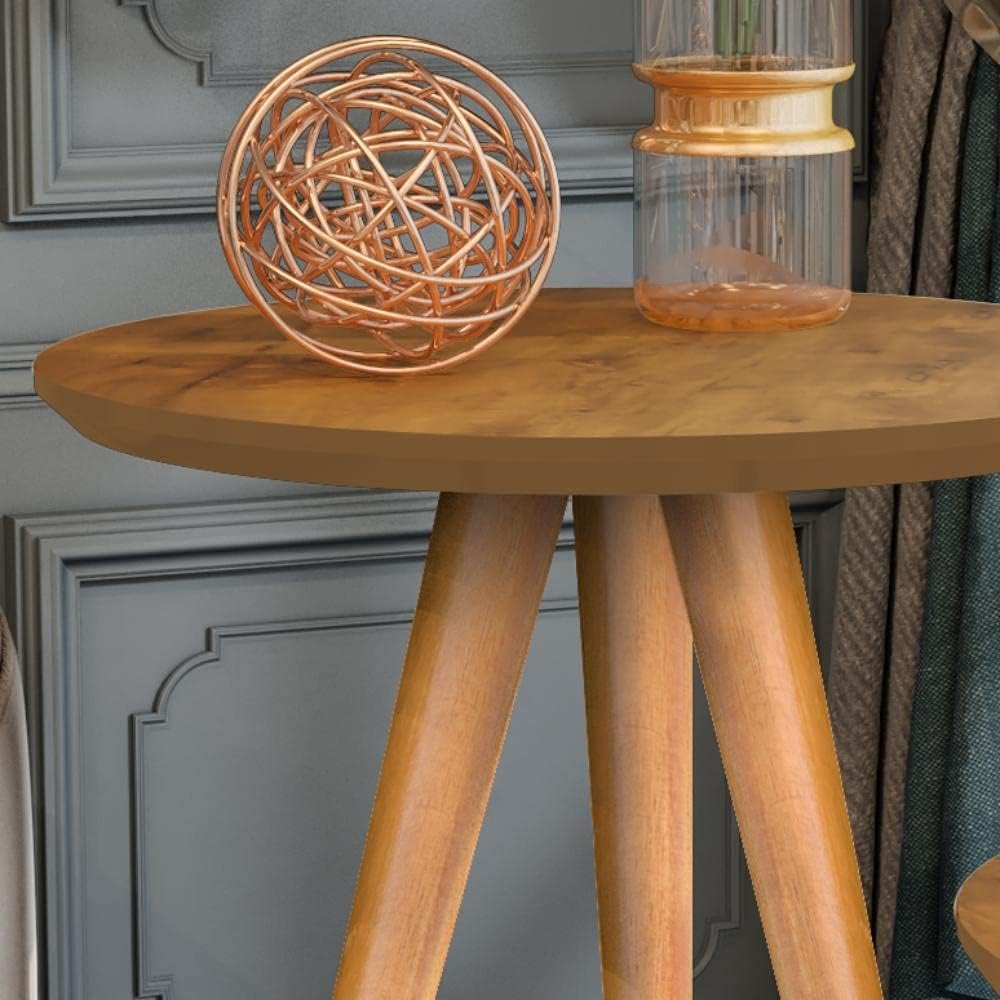 Kit Mesa Apoio e Lateral de Sofá Retrô Classic com 3 Pernas Decoração (Freijo)