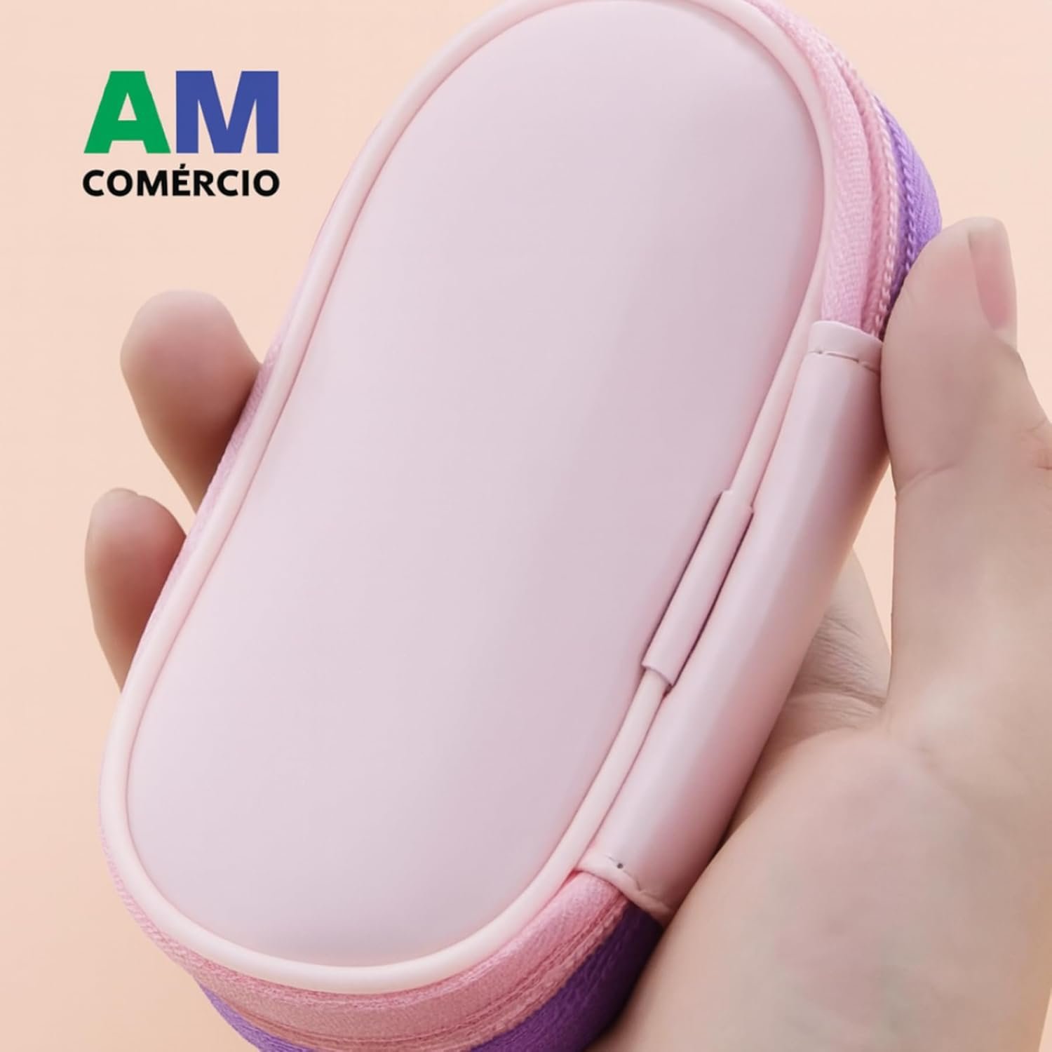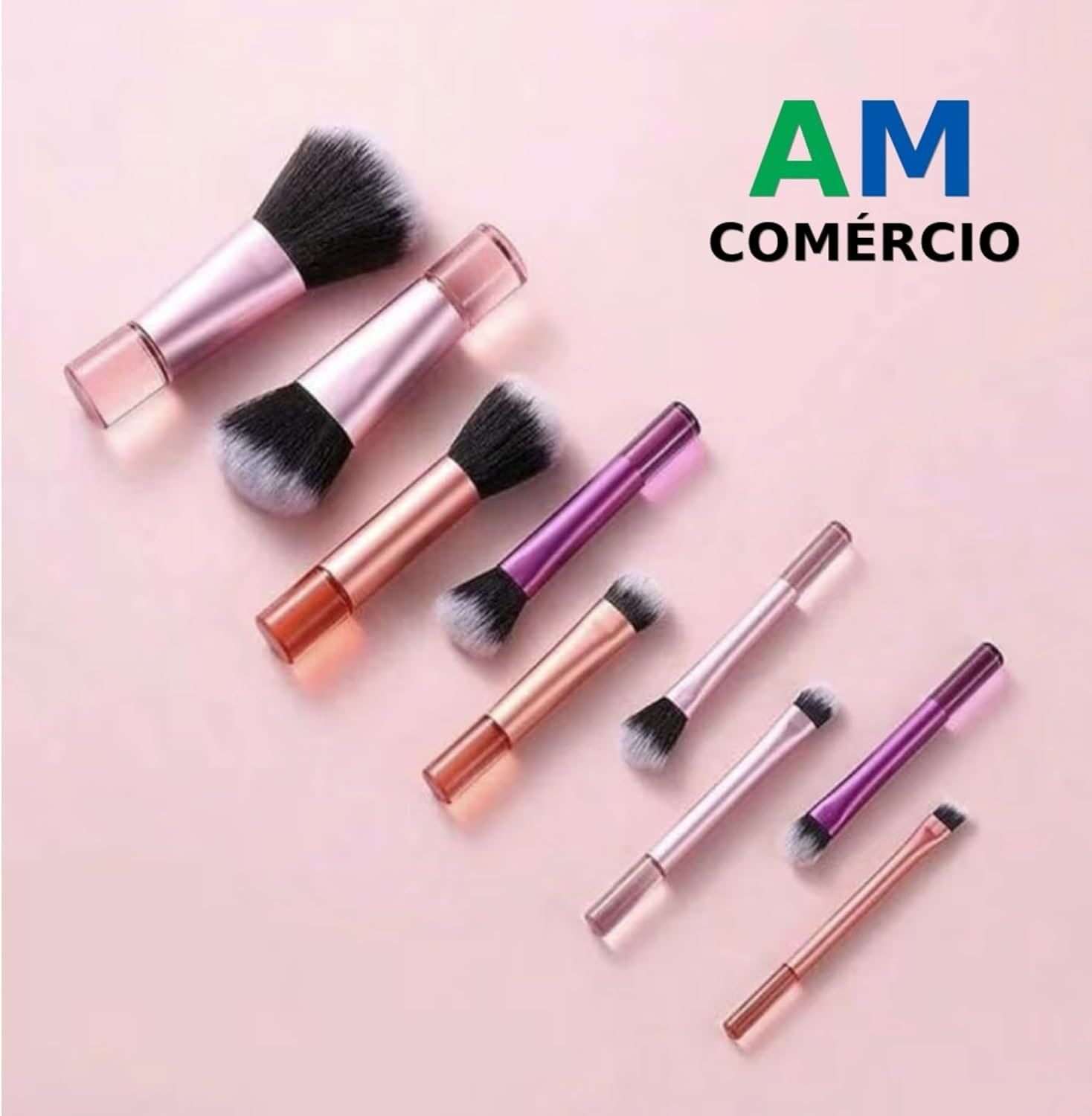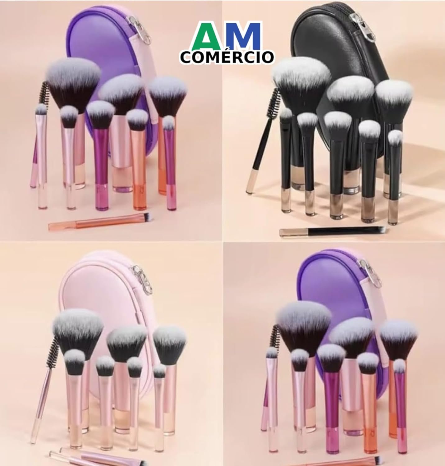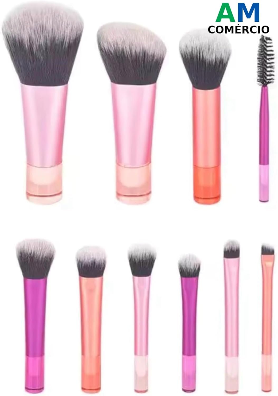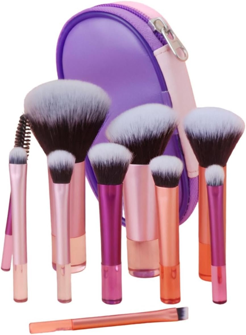 Kit Mini Pincéis de Maquiagem 10 Peças Travel Size com Nécessaire – Cerdas Macias para Make Completa – Rosa e Roxo