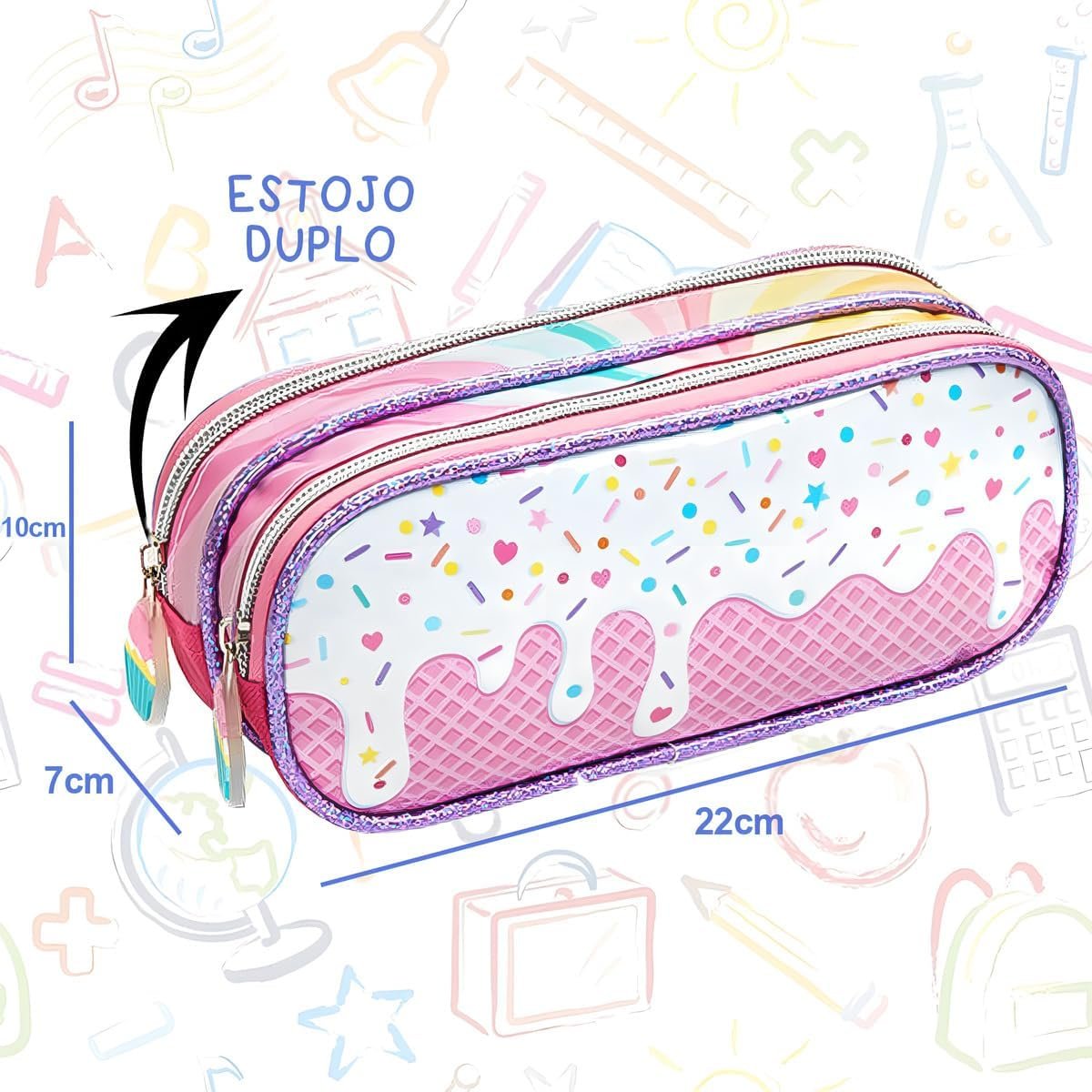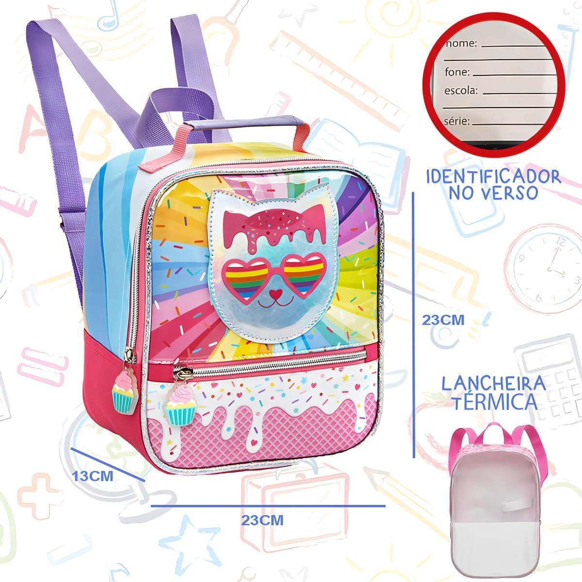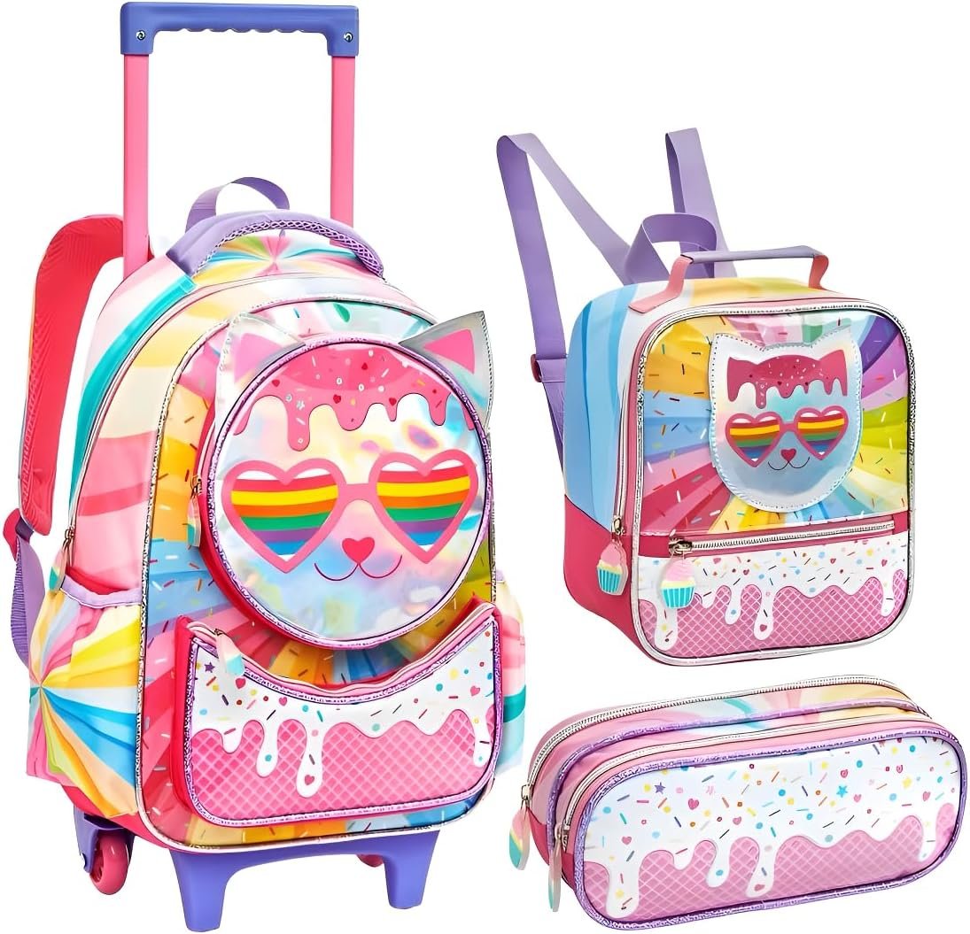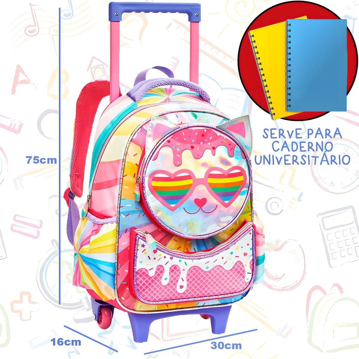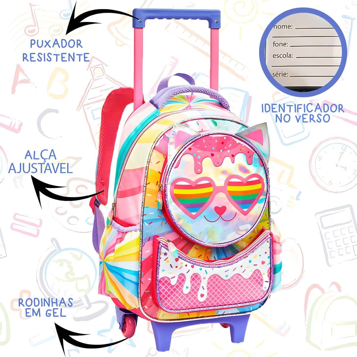 Kit Mochila Escolar Infantil com Rodinhas 3 em 1 para Menina – Mochila + Lancheira + Estojo – Mochila de Rodinha Feminina Infantil – Sereia, Unicórnio e Fada