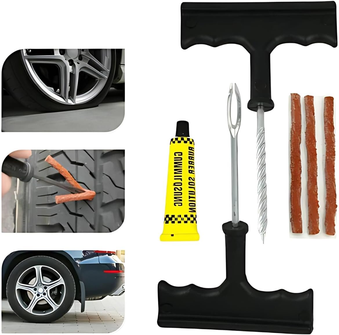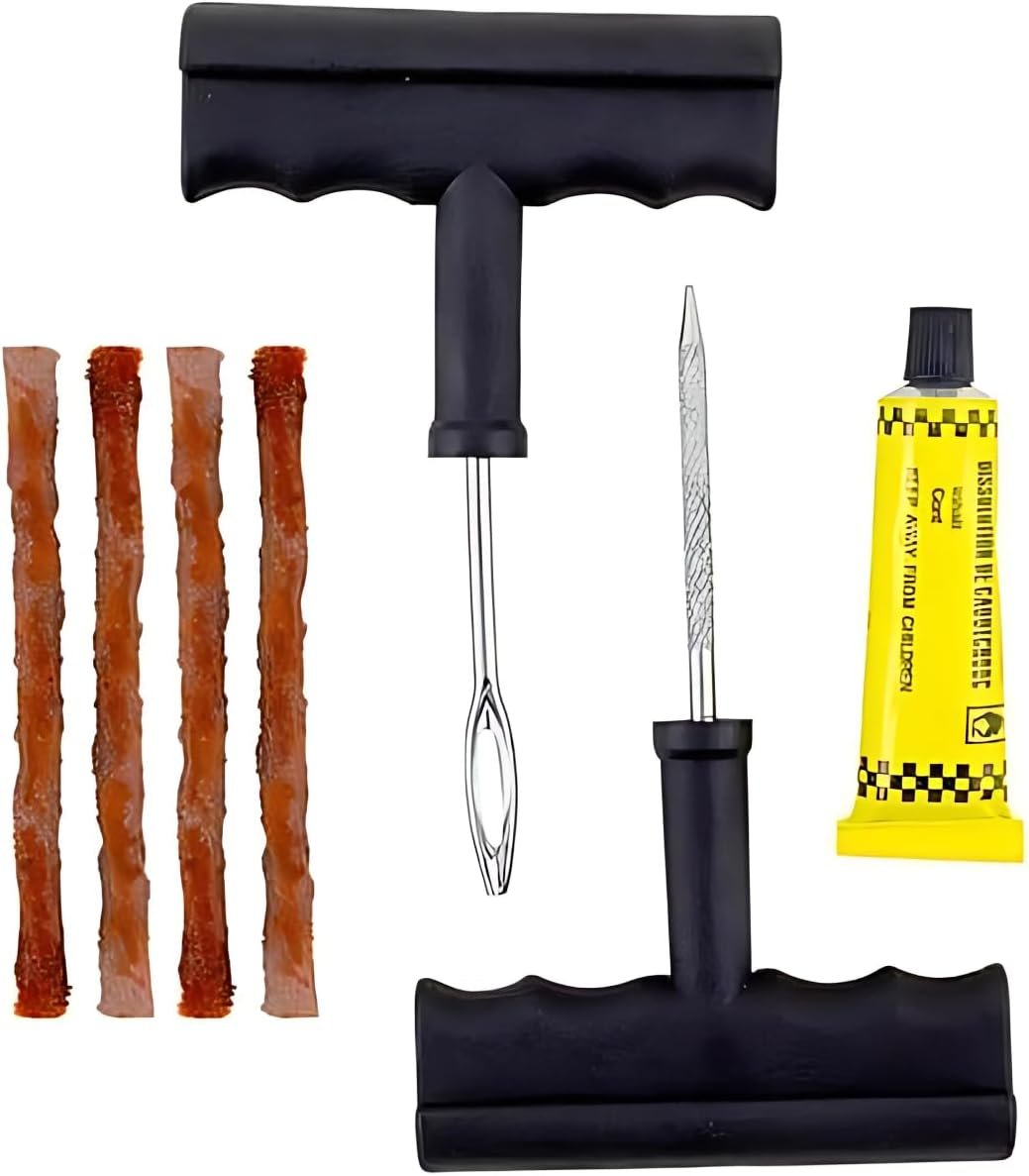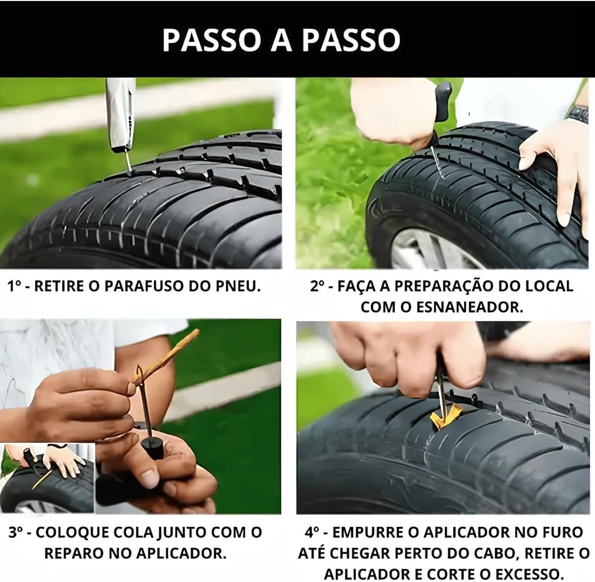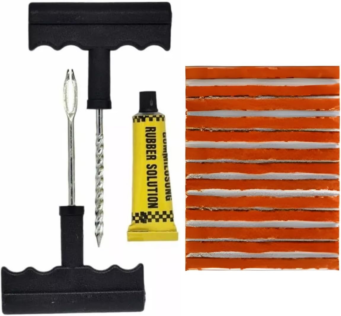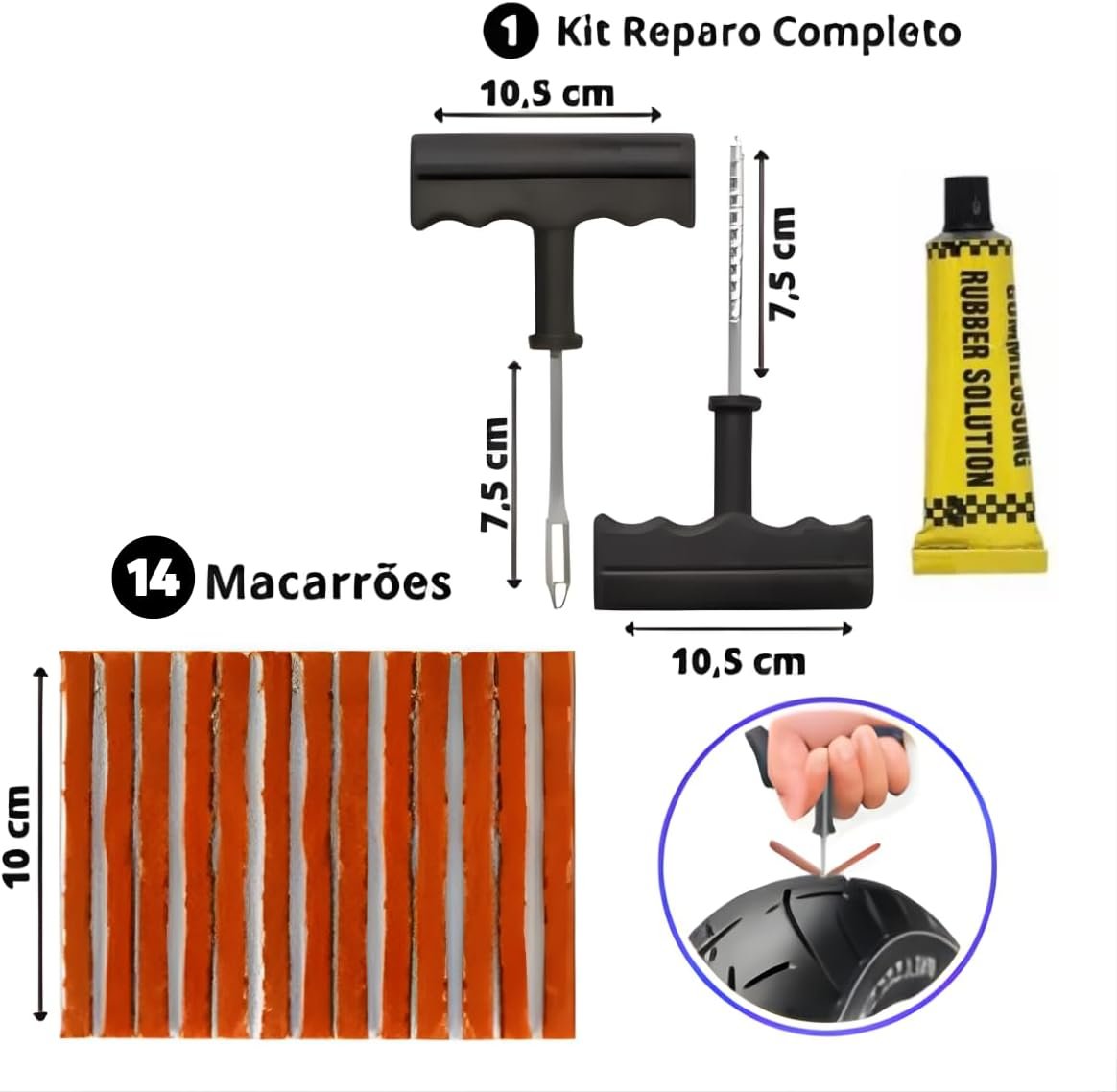 Kit Profissional de Reparo de Pneus Premium 17 Peças com Cola e 14 Remendos Macarrão Selantes para Conserto de Carro e Moto