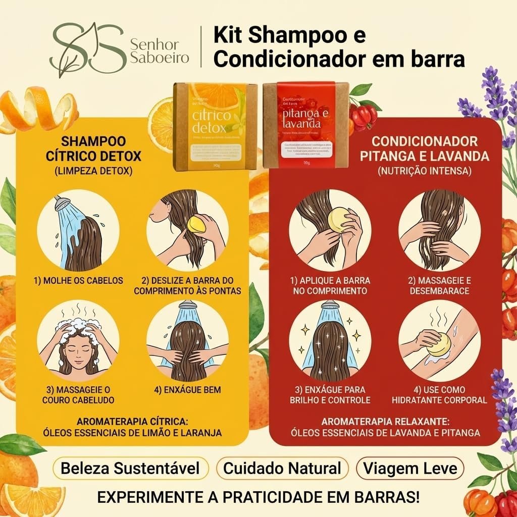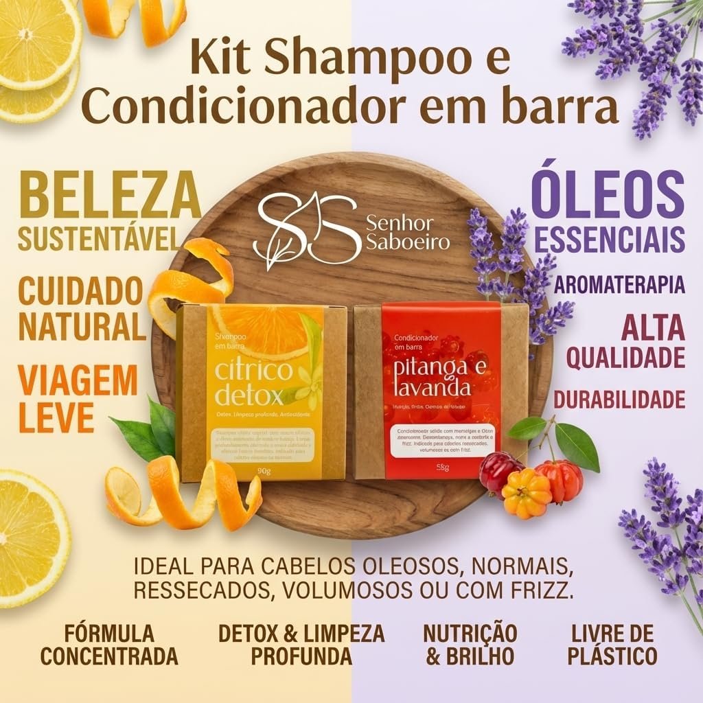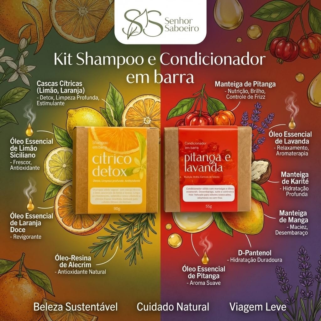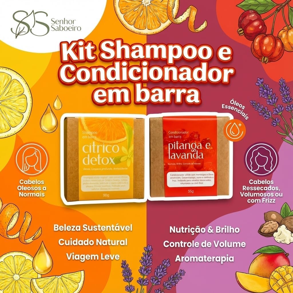 Kit Shampoo e Condicionador em Barra Senhor Saboeiro – Cabelos Oleosos Citrico e Pitanga