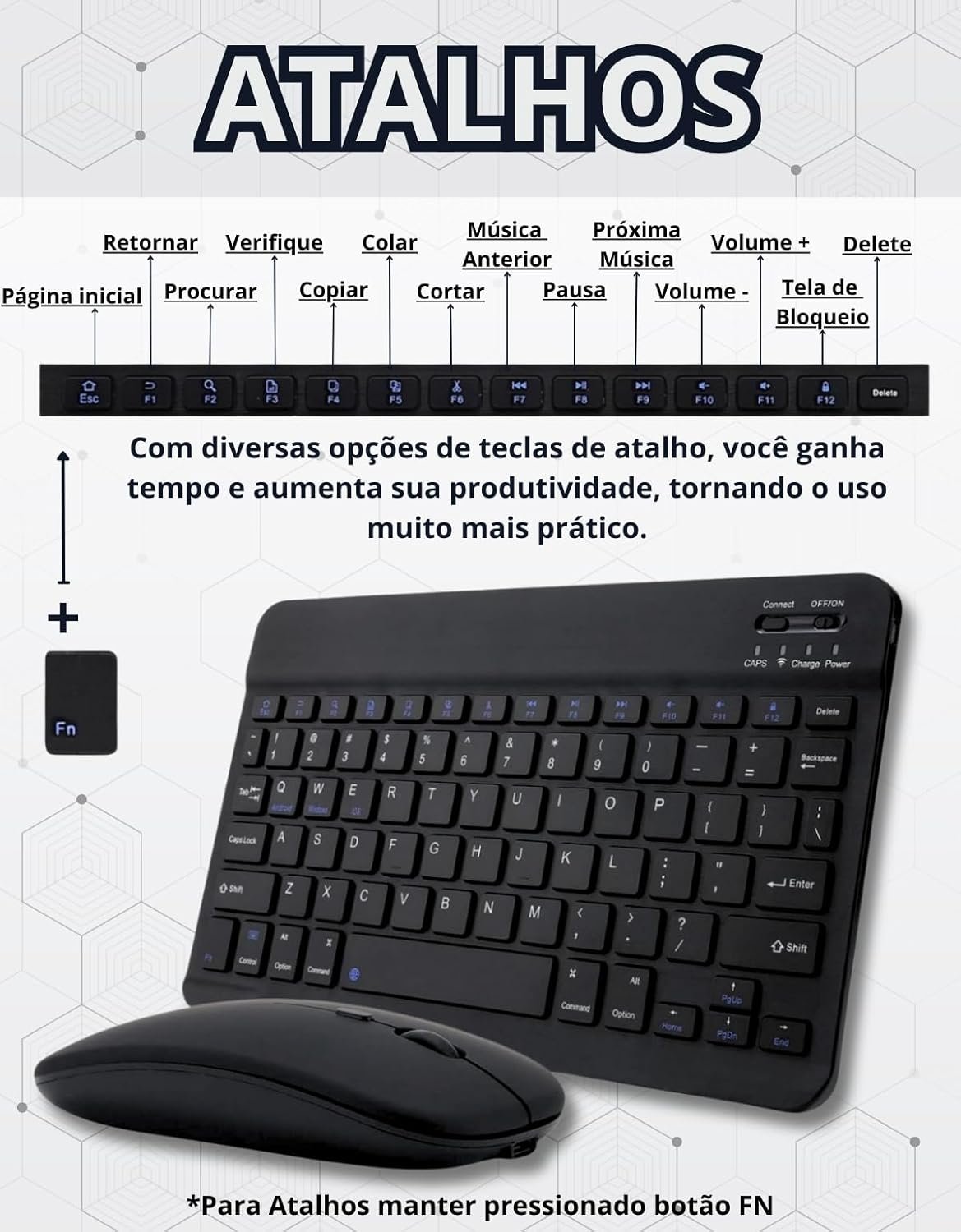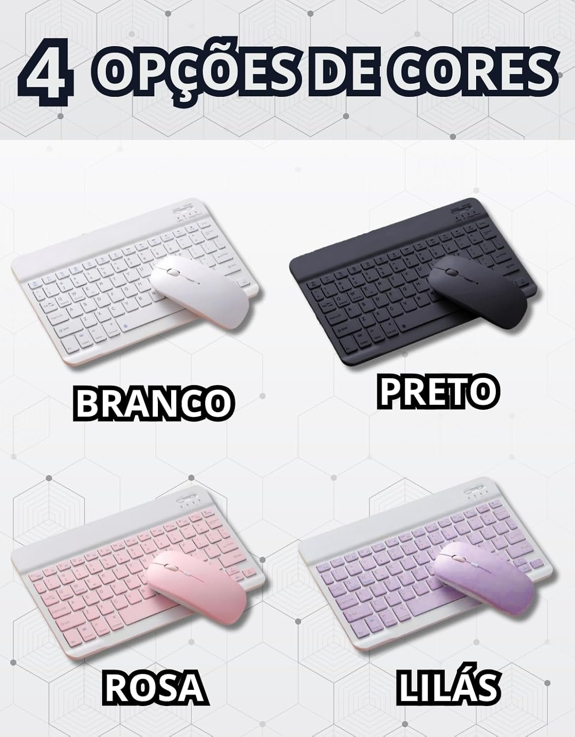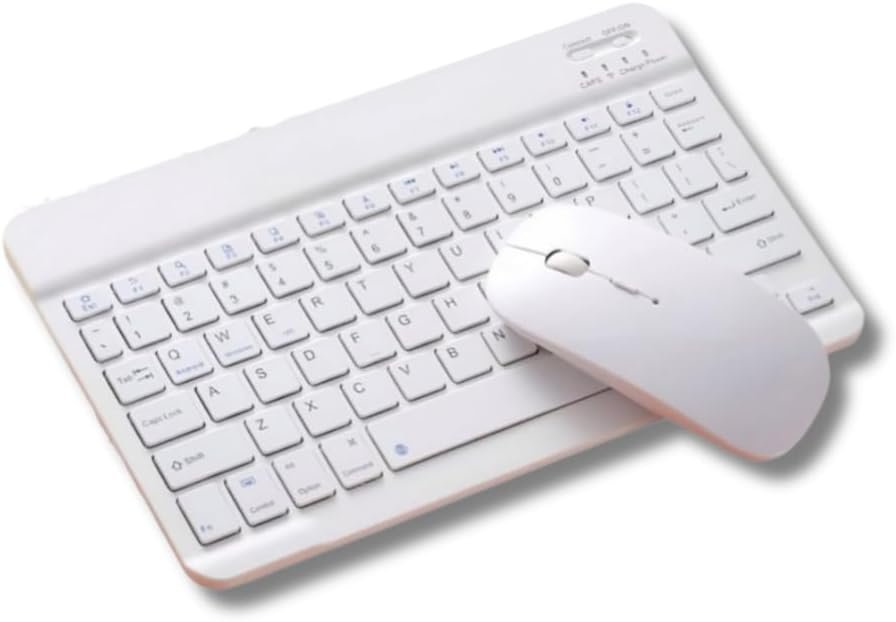 Kit Teclado e Mouse Bluetooth Sem Fio, Recarregável com USB-C, Ultrafino e Portátil, Compatível com iPad, iPhone, Android, Tablets (Branco)