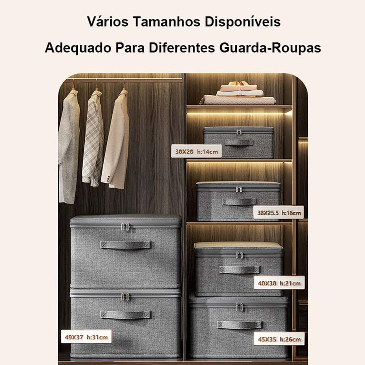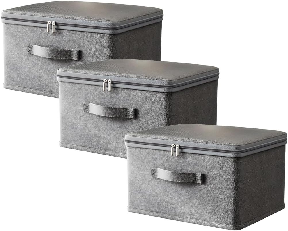 Kit Triplo de Caixas Organizadoras Médias – Zíper Duplo para Roupas Infantis e Documentos