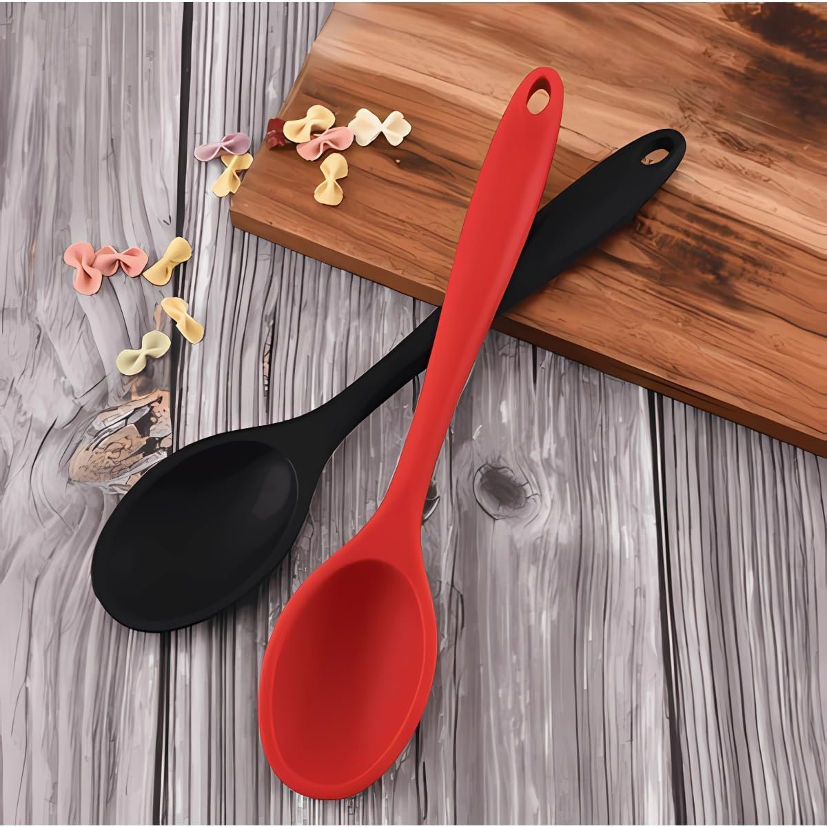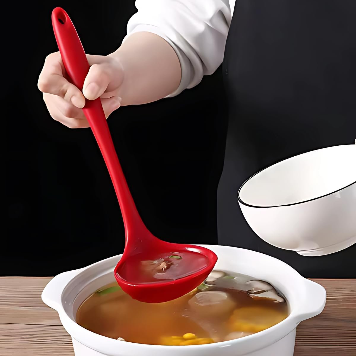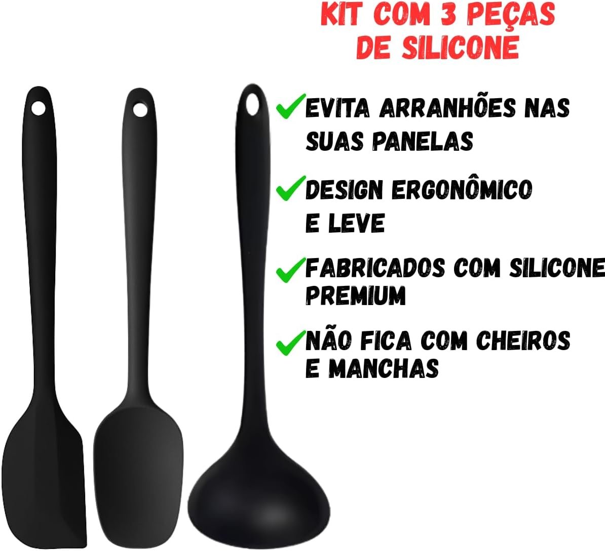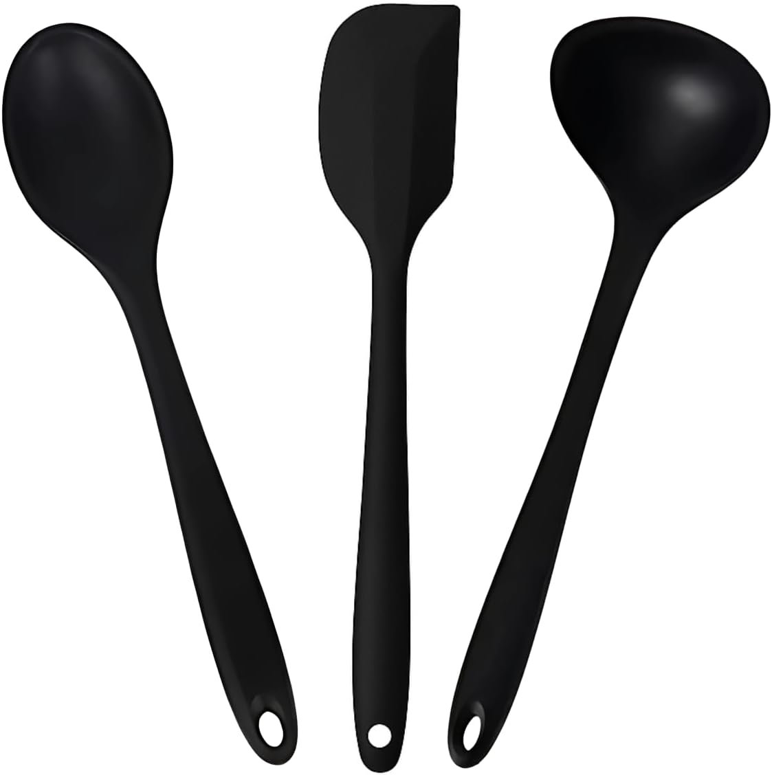 Kit Utensílios Cozinha Espátula Colher Concha Silicone Premium Conjunto 3 Itens Antirriscos Antiaderente Livre de BPA Maleável Durável Resistente Multiuso Fácil Limpeza Ideal para Cozinhar Preto 27cm