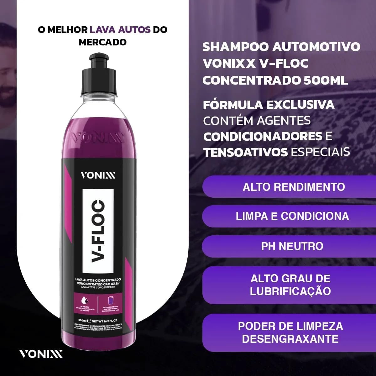 Kit V-Floc Shampoo Neutro Super Concentrado Automotivo + Cera Liquida Protetora Blend Vonixx + Luva Pano Microfibra Yamase