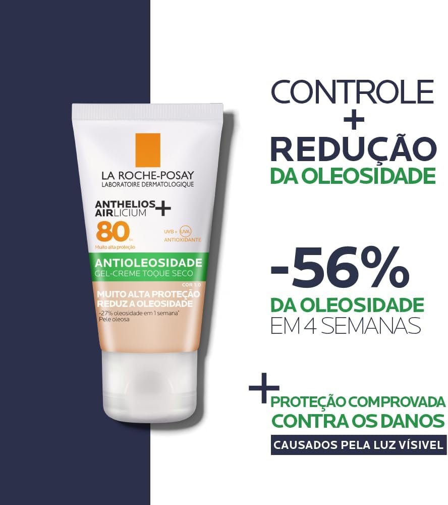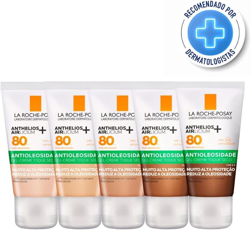 La Roche-Posay, Anthelios Airlicium, Protetor Solar Facial Antioleosidade com Cor, Controle de Oleosidade, Efeito Matte, Toque limpo, Ação anti-transferência da cor, Cobertura