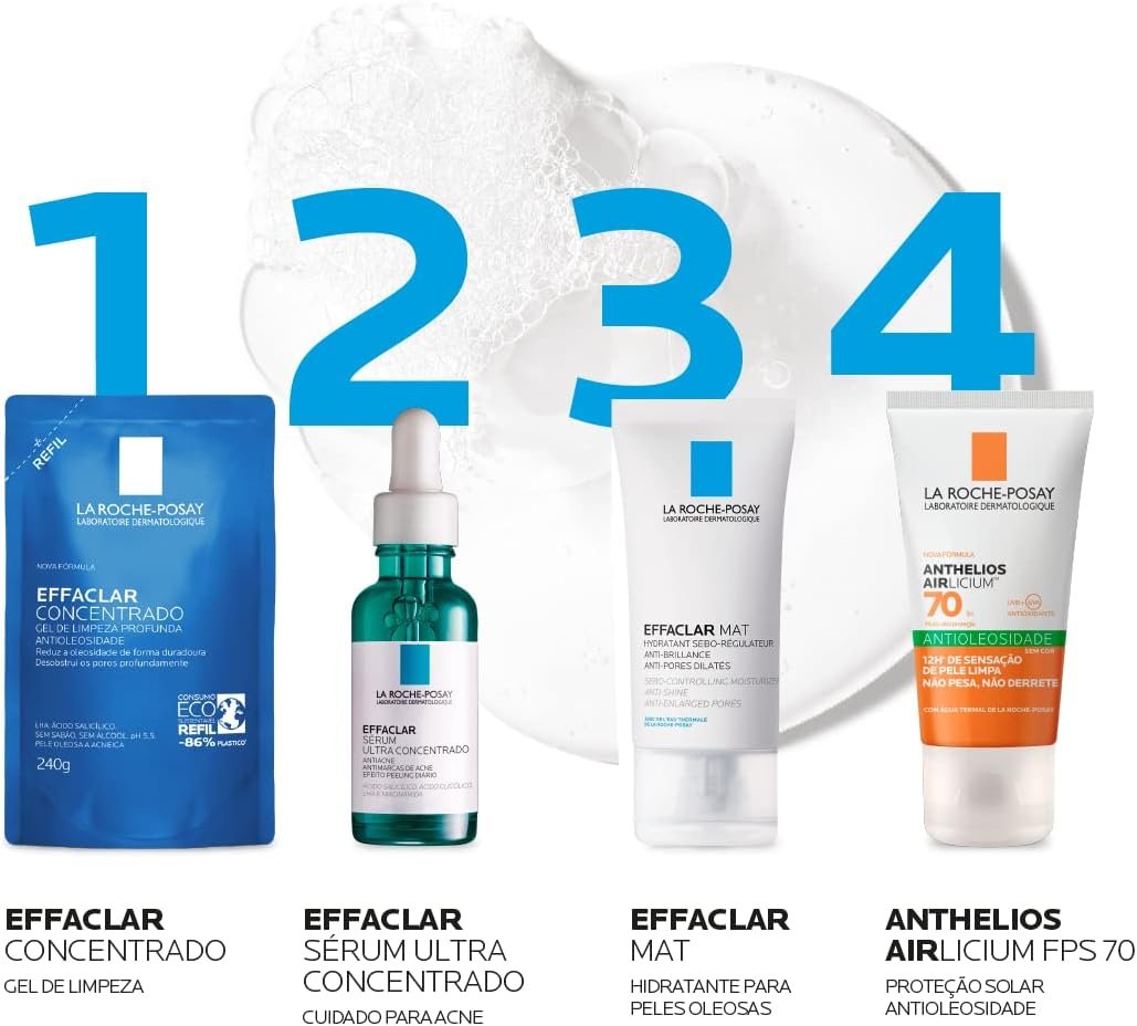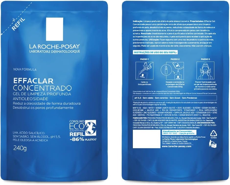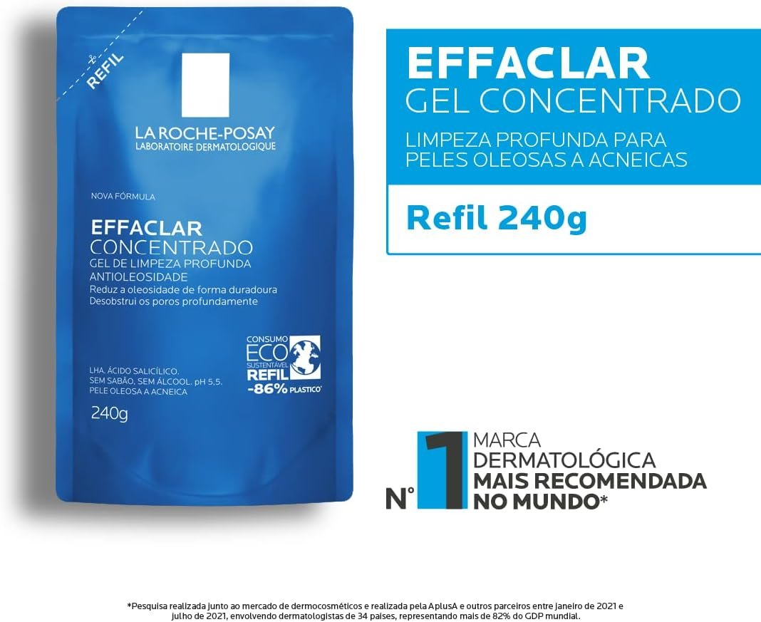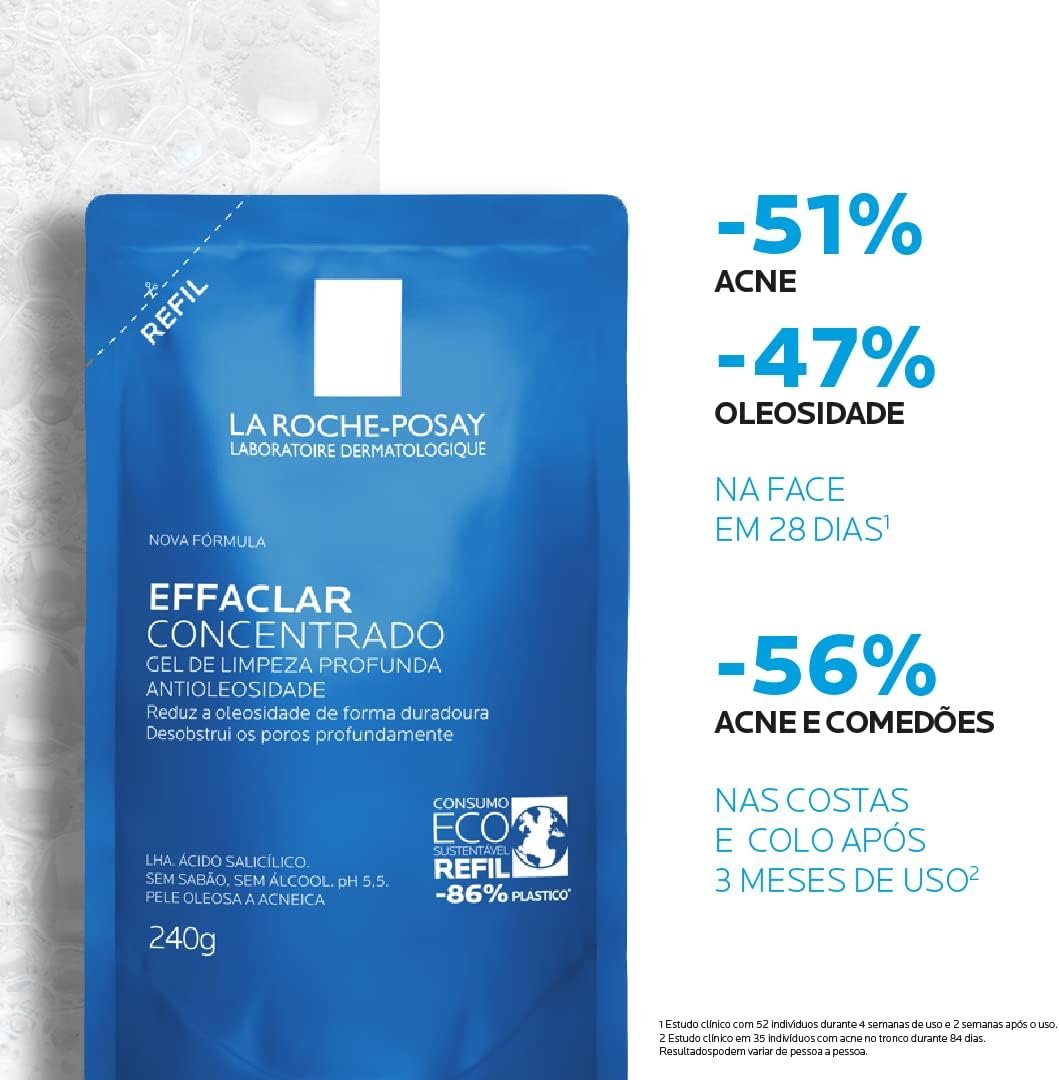 La Roche-posay Effaclar Gel Concentrado. Gel de Limpeza Facial. Limpa a Pele Profundamente Reduzindo a Oleosidade e Lesões Acneica. Limpeza Facial. Pele Oleosa. Ácido Salicílico, LHA, PCA de Zinco.