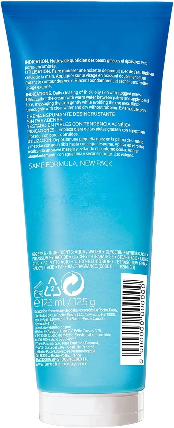 La Roche-Posay Effaclar Reequilibrante 100g, Espuma Cremosa de Limpeza para Peles Mistas a Oleosas.