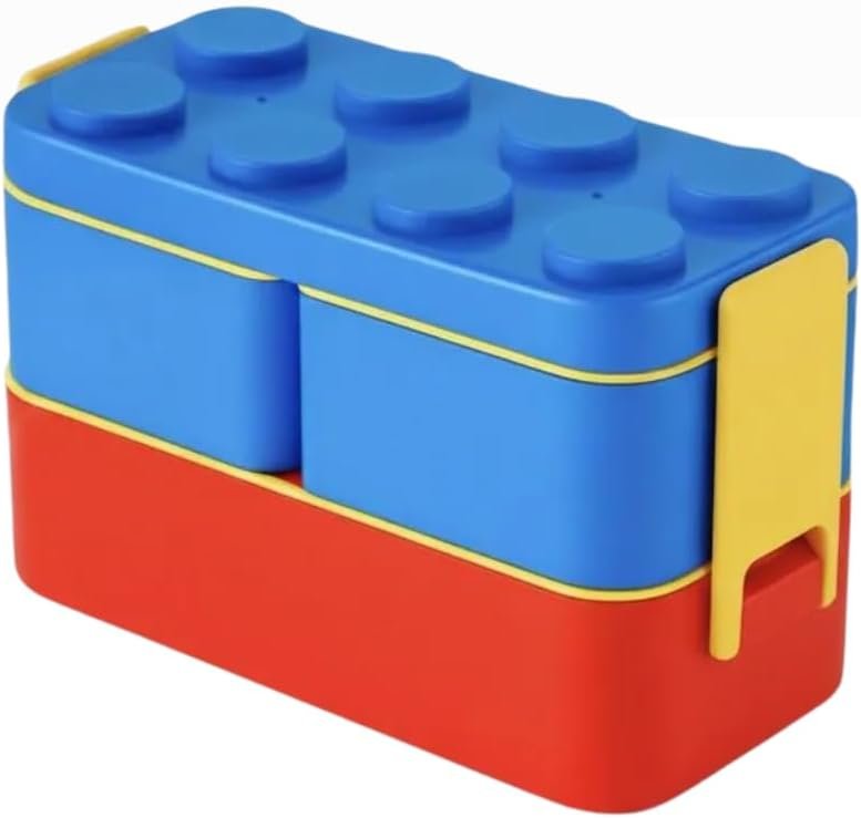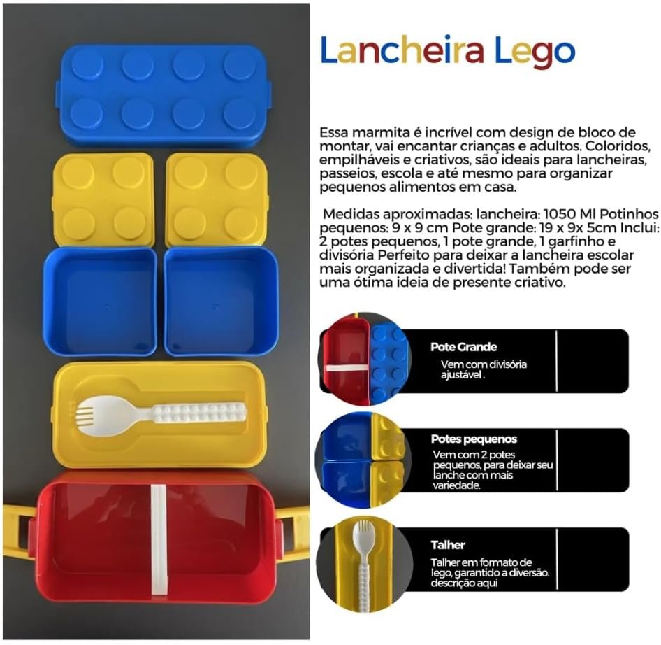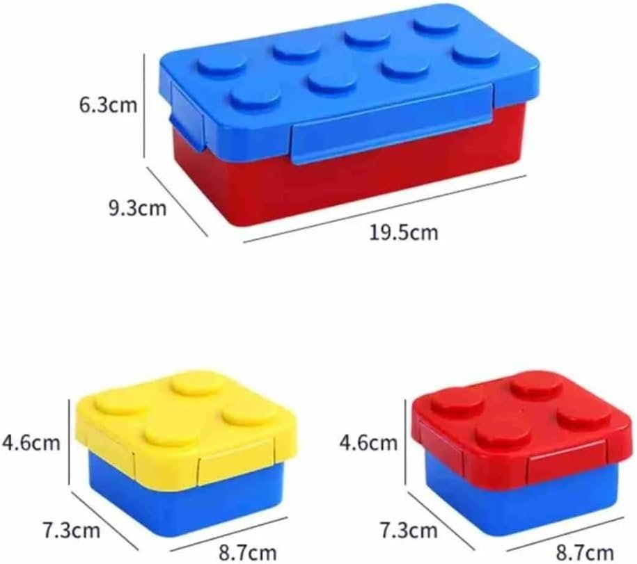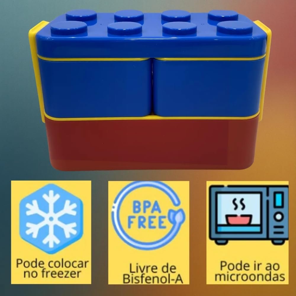 Lancheira Escolar Infantil Montável Formato Bloco de Montar Plástica Colorida com Compartimentos Livre de BPA