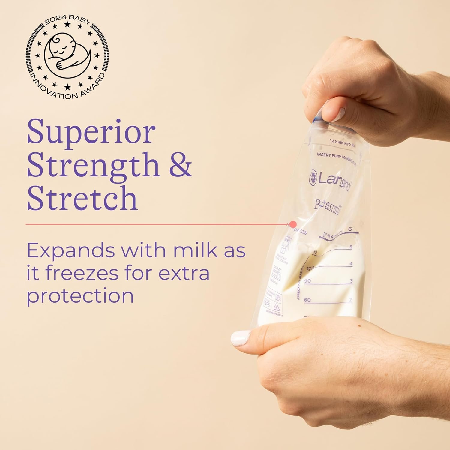 Lansinoh Bolsas de Armazenamento de Leite Materno, 50 Contagem, 6 Onças, Resistente a Fugas, Zíper, Livre de Bisfenol-A
