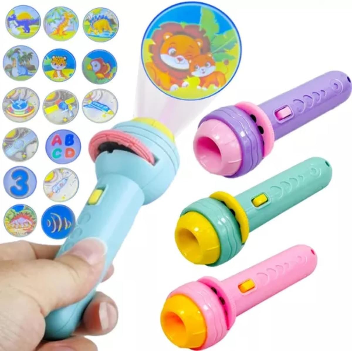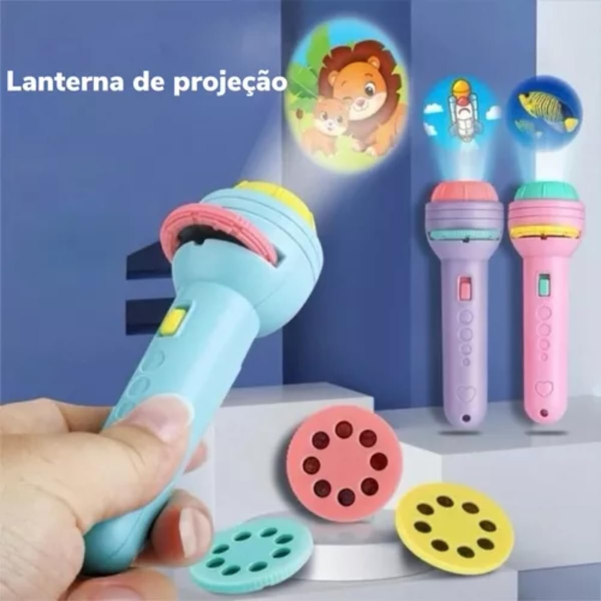 Lanterna Projetora Infantil com 3 Discos e 24 Imagens Sortidas – Brinquedo Educativo e Divertido – TYDA (AZUL)