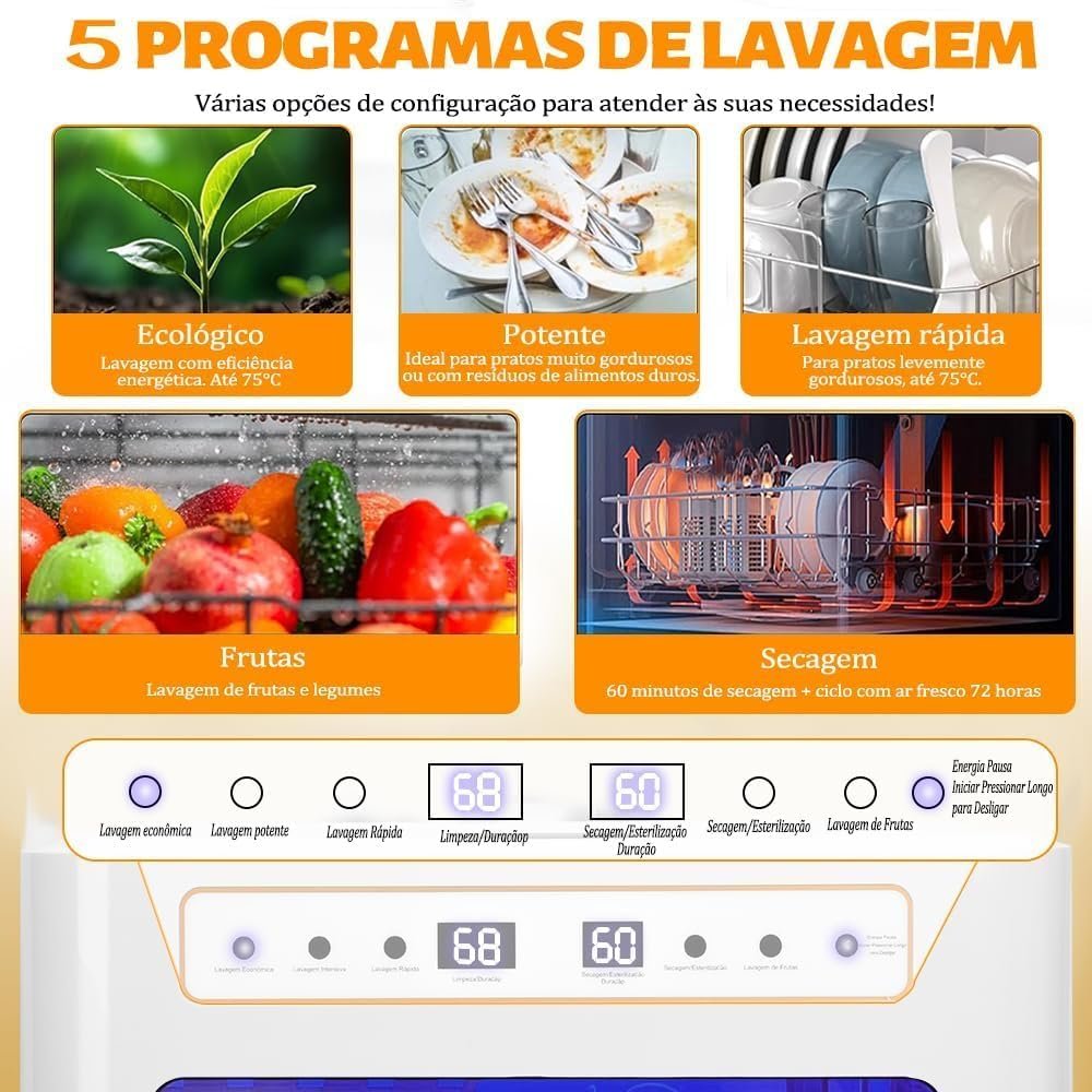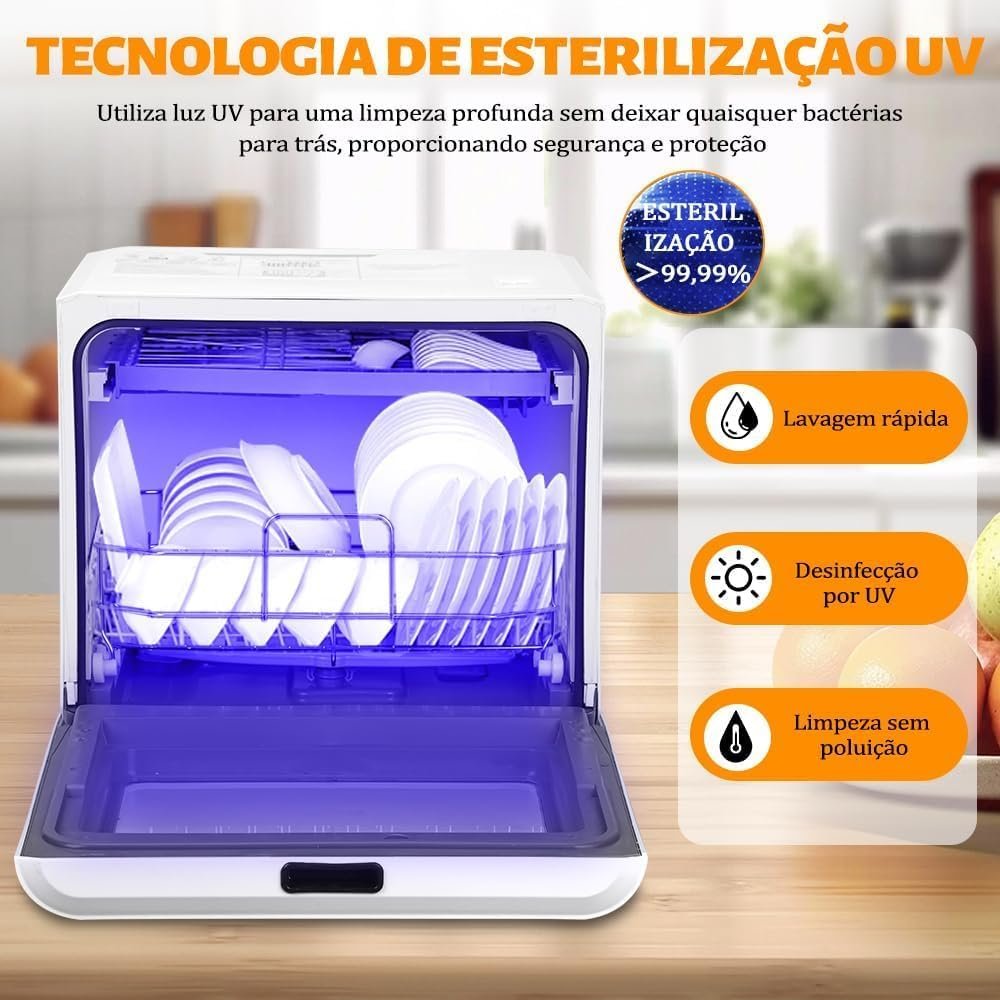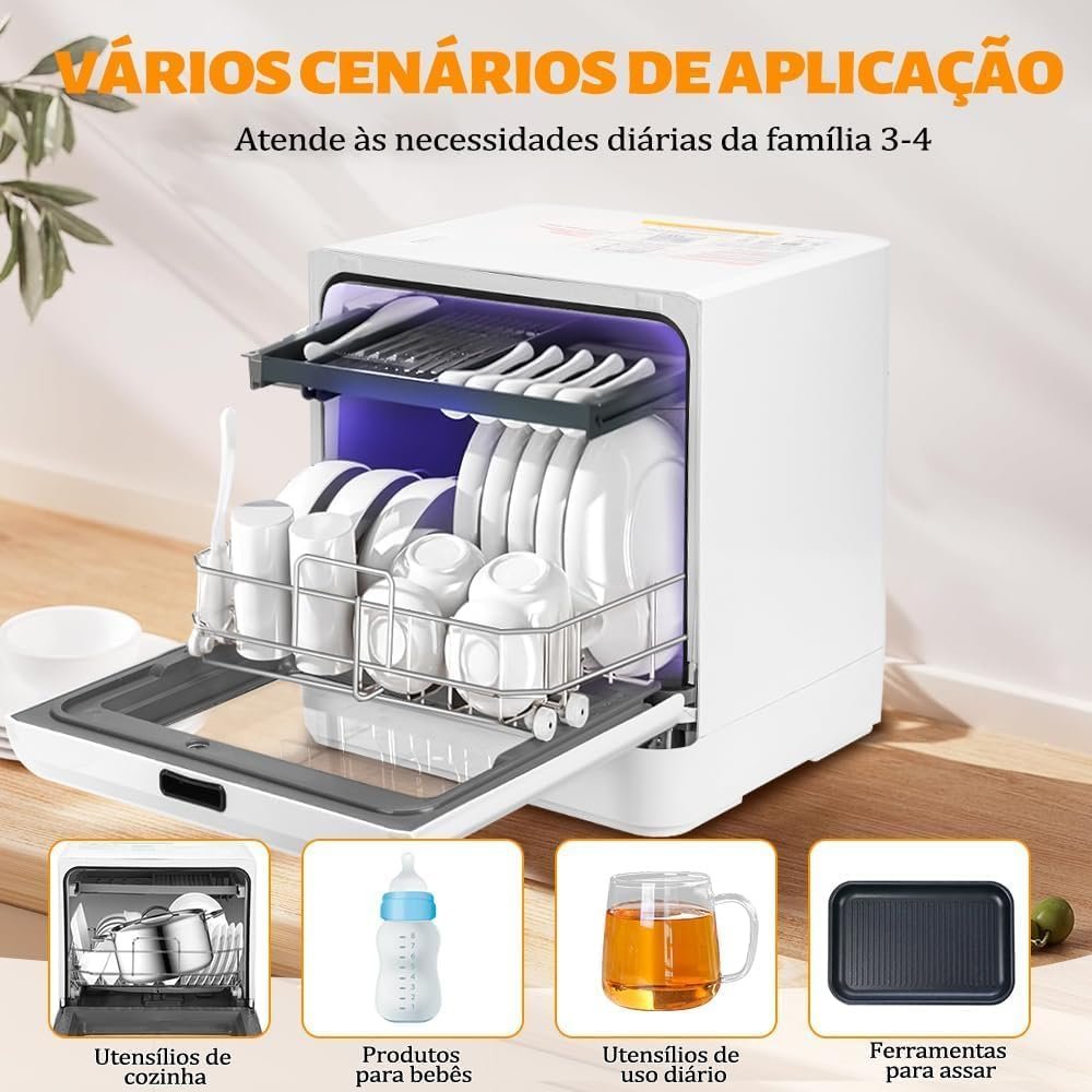Lava Louças, 110V, Lava Louças de Bancada com 5 Programas de Lavagem, Lava Loucas 6 Serviços, Consumo de 5L de Água Por Ciclo, Uso Eficiente de Energia, Adequado para Famílias Numerosas