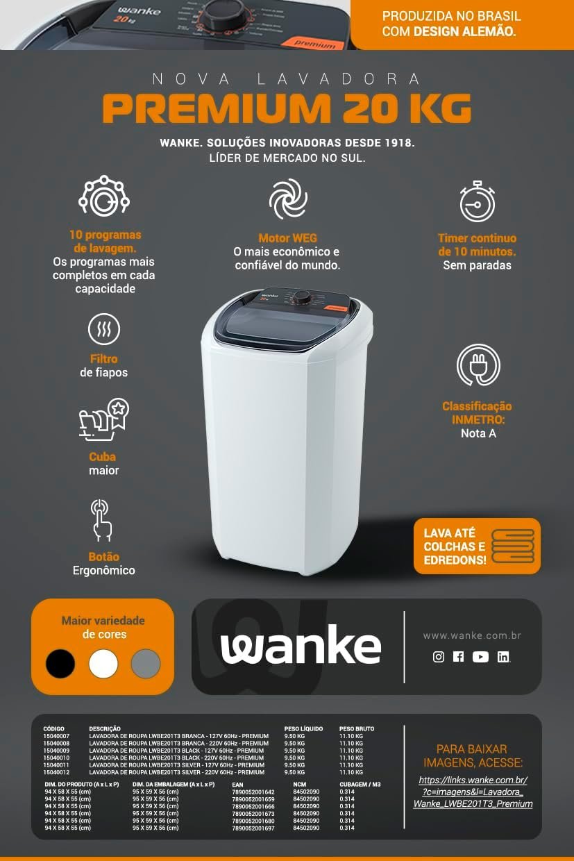 LAVADORA DE ROUPA LWBE201T3 BLACK 20.1kg 127V 60Hz