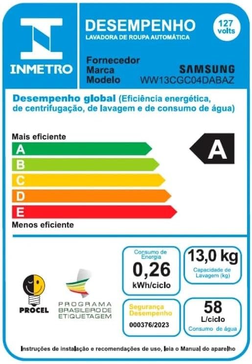 Lavadora de Roupas Digital Inverter Samsung WW13CG Black 13kg 127V