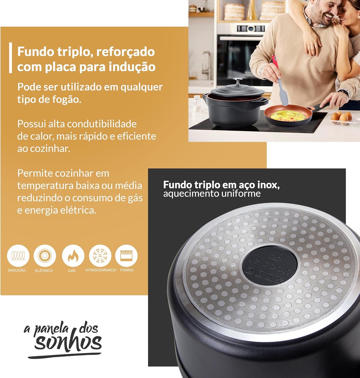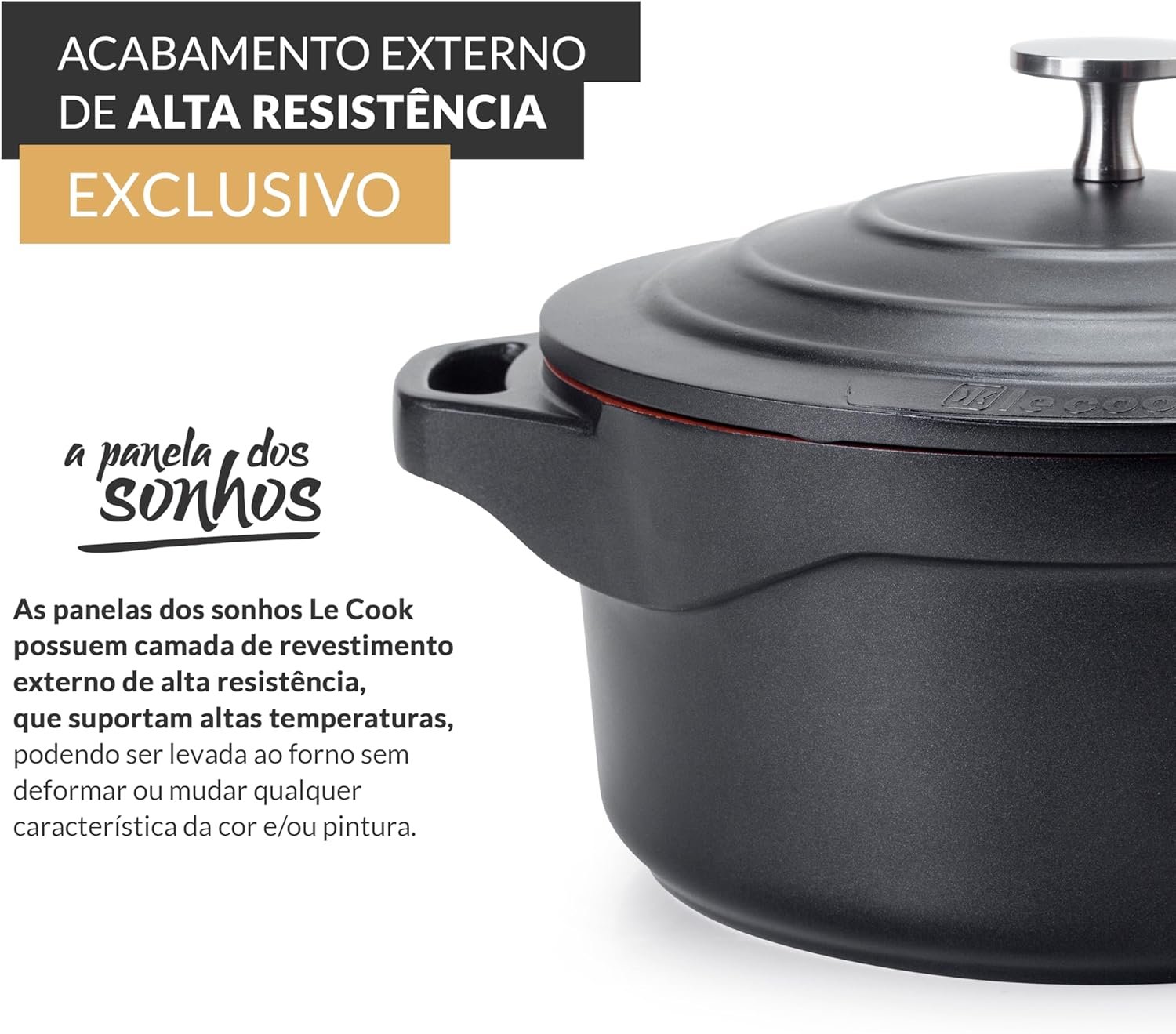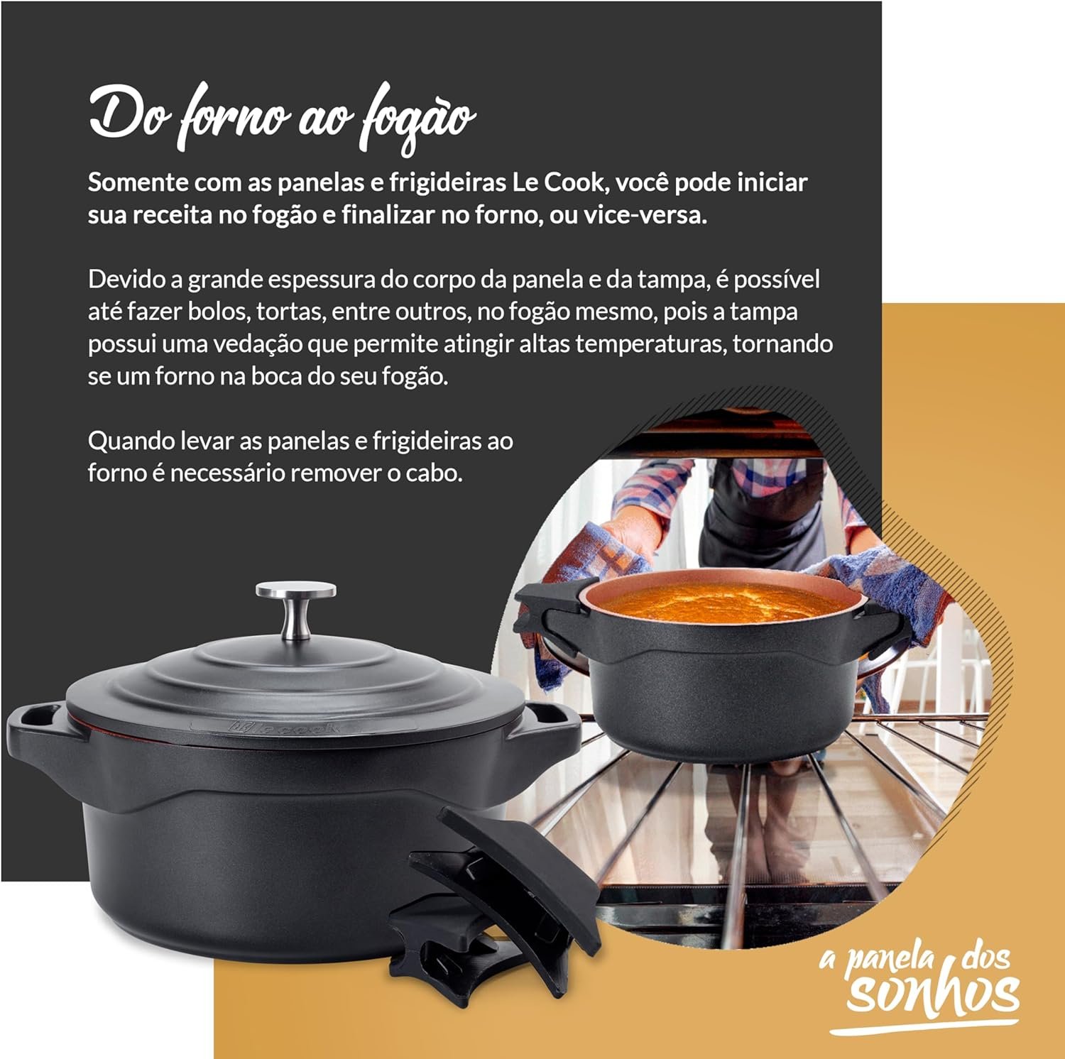 LE COOK Jogo de Panelas Antiaderente Cerâmica Preto 4 Peças Caçarolas 20cm e 24cm, Panela 18cm e Frigideira 24cm com Cabos Destacáveis Alças de Silicone Alta Performance