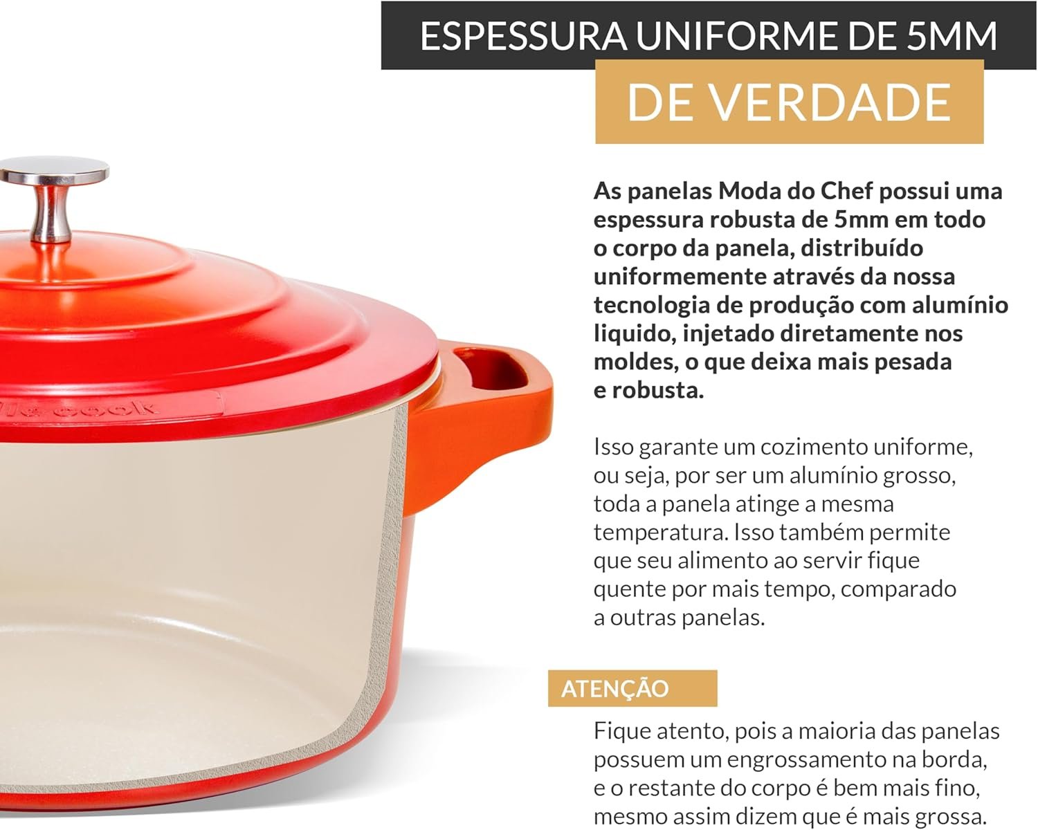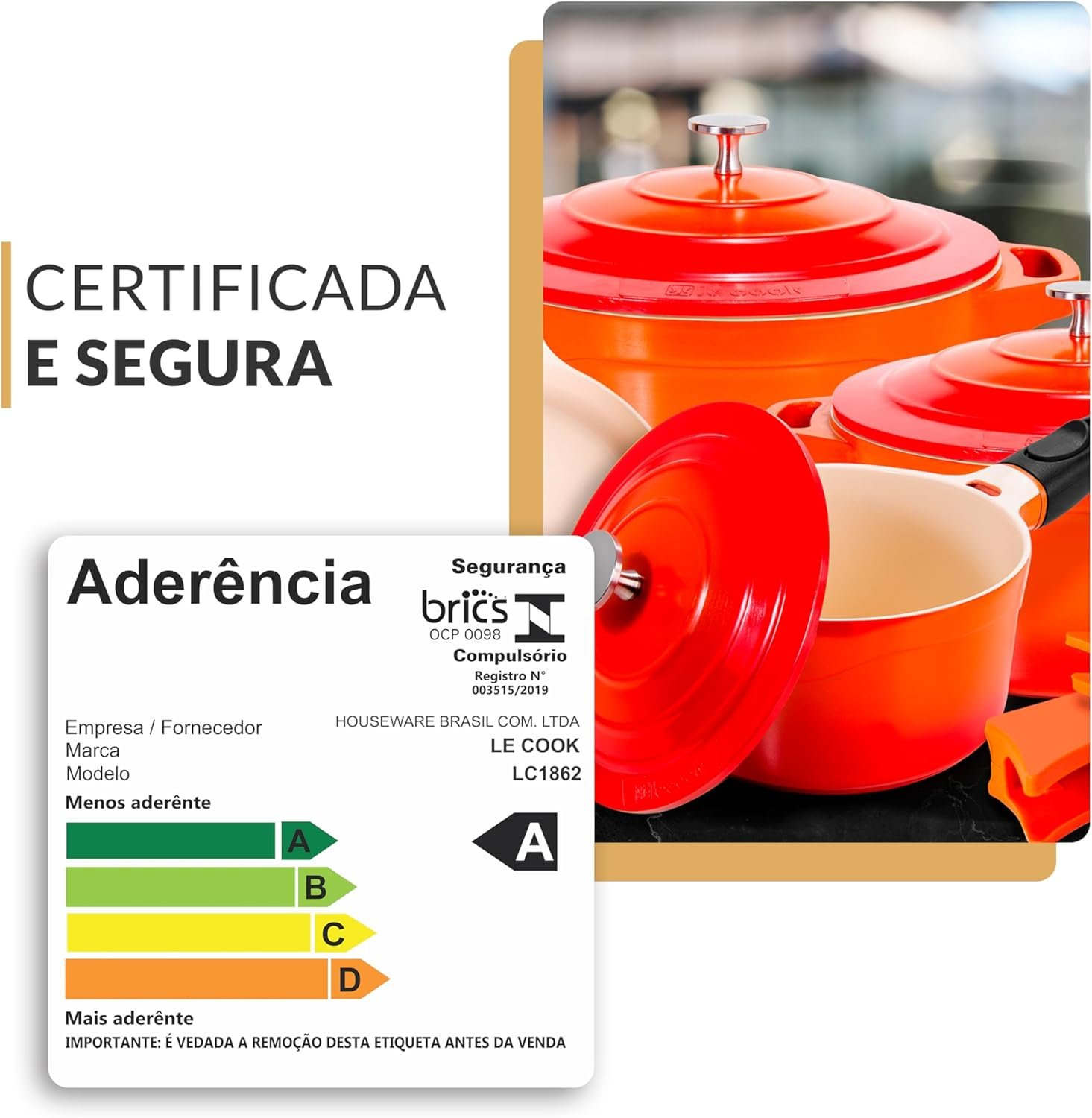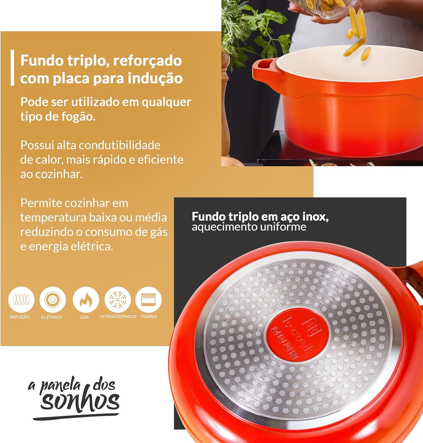 LE COOK Panela Caçarola Premier 20cm Cerâmica Antiaderente Laranja com Alças de Silicone e Tampa Inox Cozinha Saudável e Sofisticada Compatível com Forno e Fogão Linha Premium