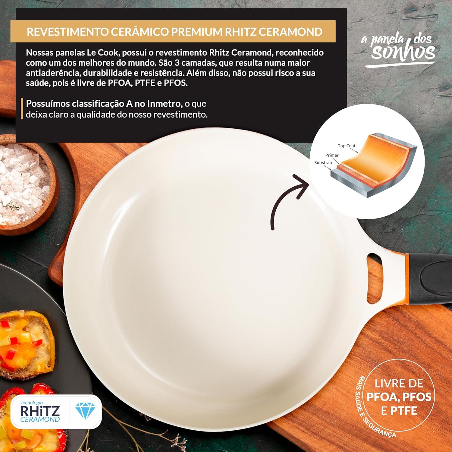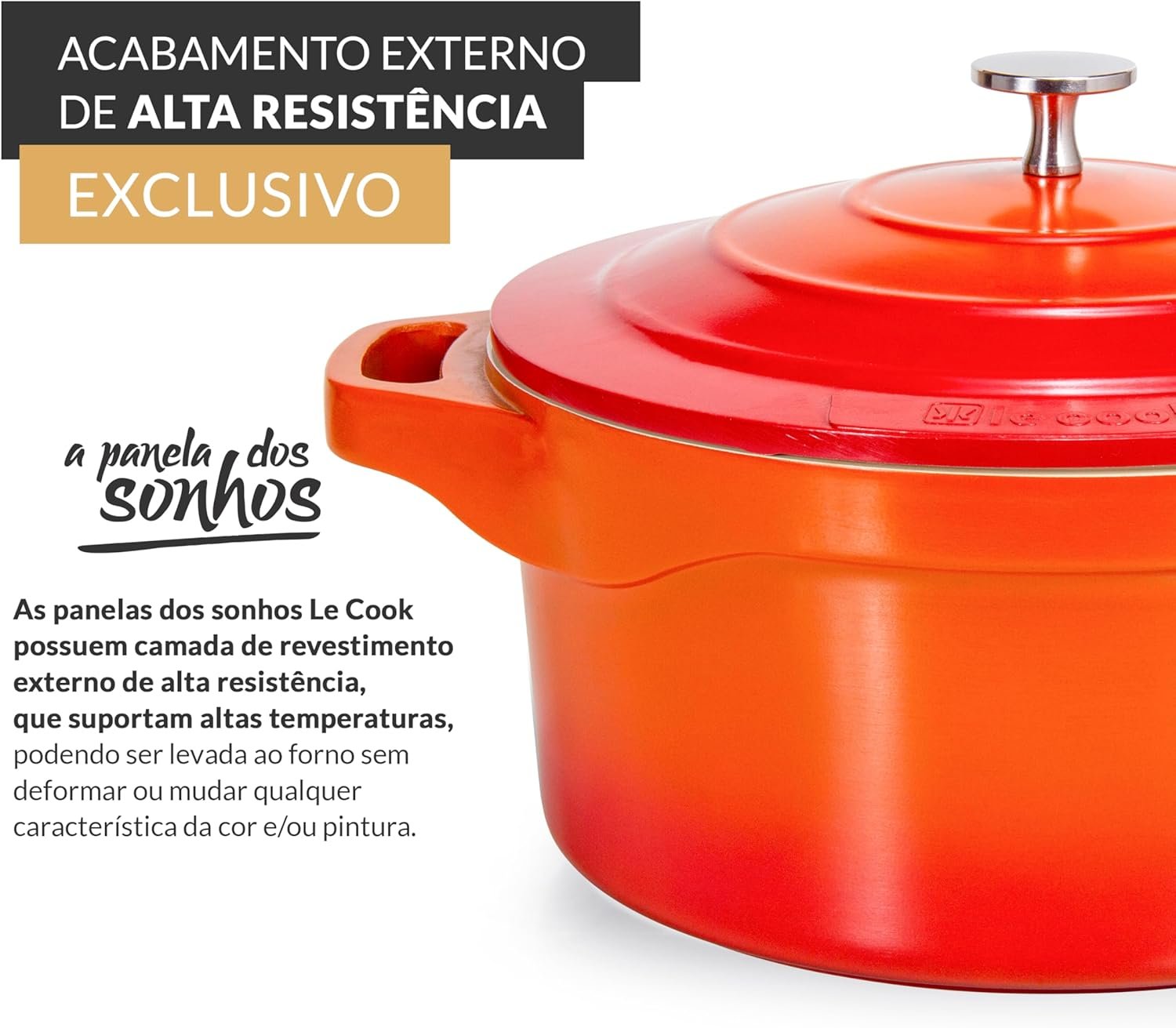 LE COOK Panela Caçarola Premier Revestimento Cerâmica Antiaderente 24cm Laranja Alta Performance Alças com Silicone Tampa Inox Vai ao Forno Fogão e Forno 4,5L