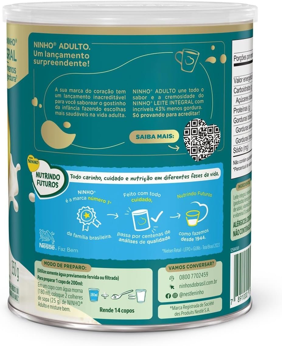 Leite Pó Semidesnatado Ninho Adulto Lata 350gLeite Pó Semidesnatado Ninho Adulto Lata 350g