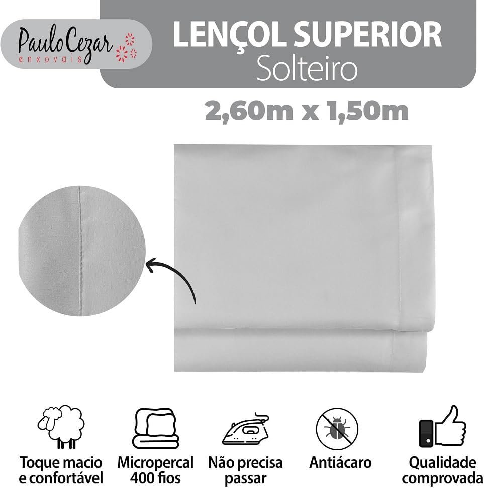 Lençol Avulso Superior Solteiro sem Elástico Sobre Lençol Percal 400 Fios Antiácaro, Anti-pilling com Toque Extra Macio (Cinza, Solteiro)Lençol Avulso Superior Solteiro sem Elástico Sobre Lençol Percal 400 Fios Antiácaro, Anti-pilling com Toque Extra Macio (Cinza, Solteiro)