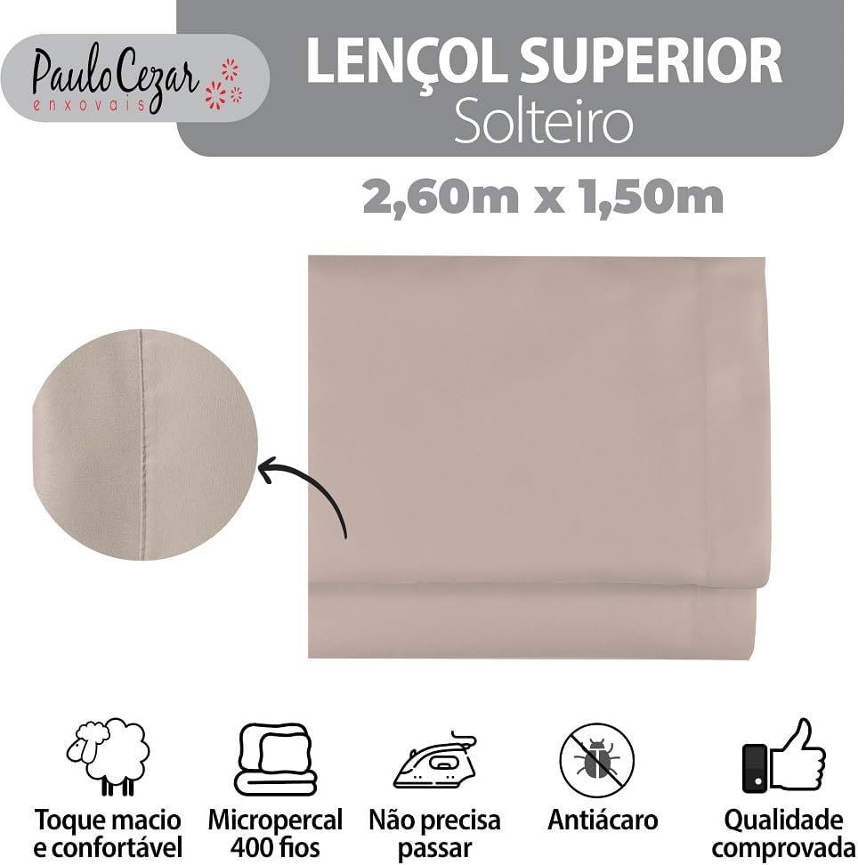 Lençol Avulso Superior Solteiro sem Elástico Sobre Lençol Percal 600 Fios Antiácaro, Anti-pilling com Toque Extra Macio (Bege, Solteiro)