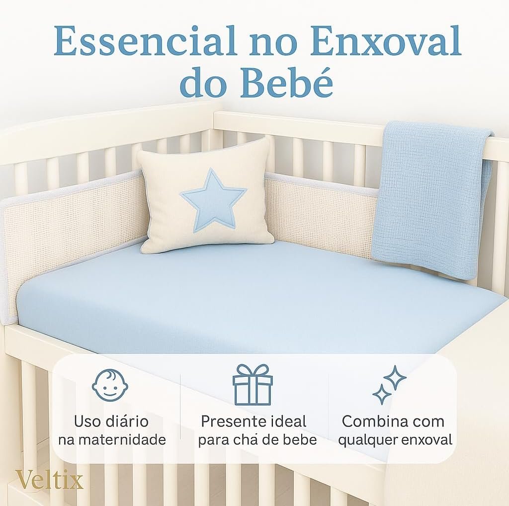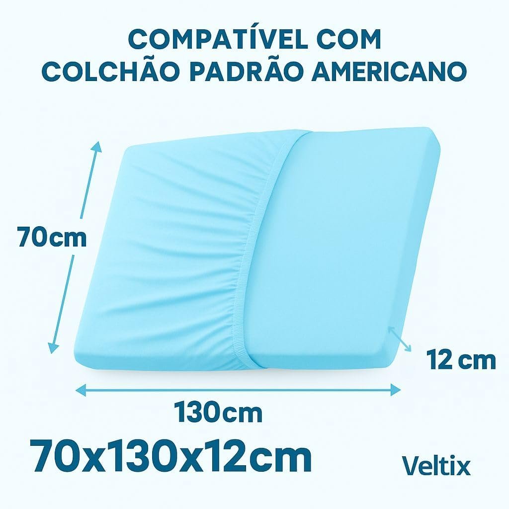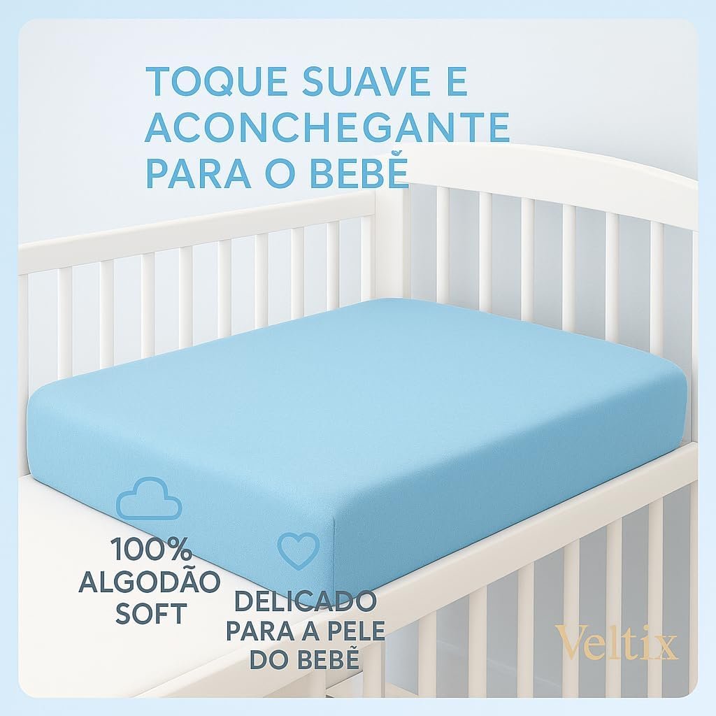 Lençol de Berço com Elástico Azul Bebê – Tecido Soft 100% Algodão – Para Colchão Padrão Americano até 70x130x12cm – Conforto e Praticidade