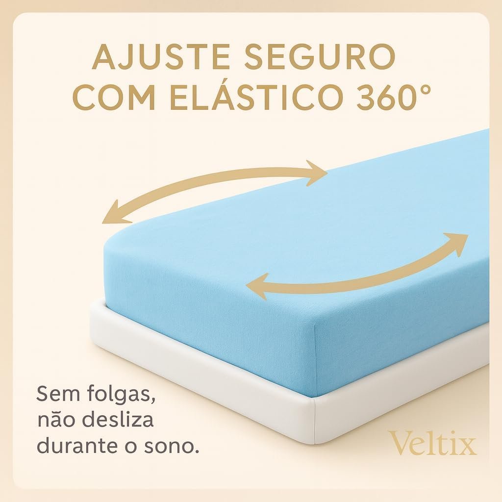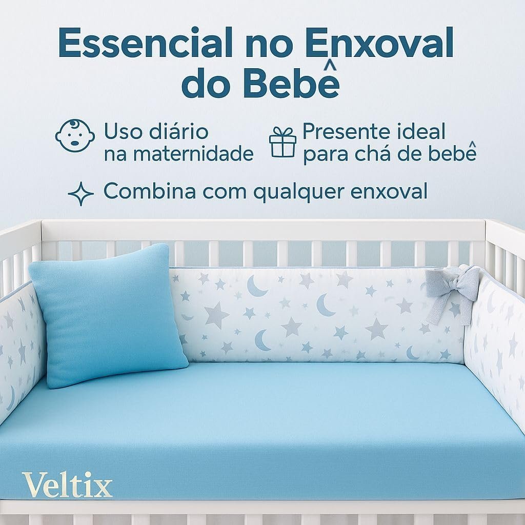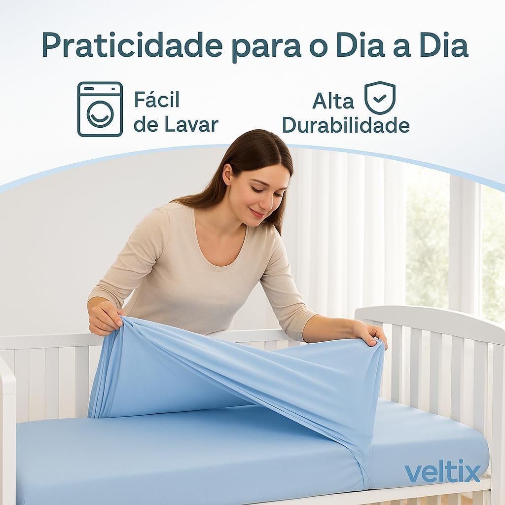 Lençol de Berço com Elástico Azul Bebê – Tecido Soft 100% Algodão – Para Colchão Padrão Americano até 70x130x12cm – Conforto e Praticidade