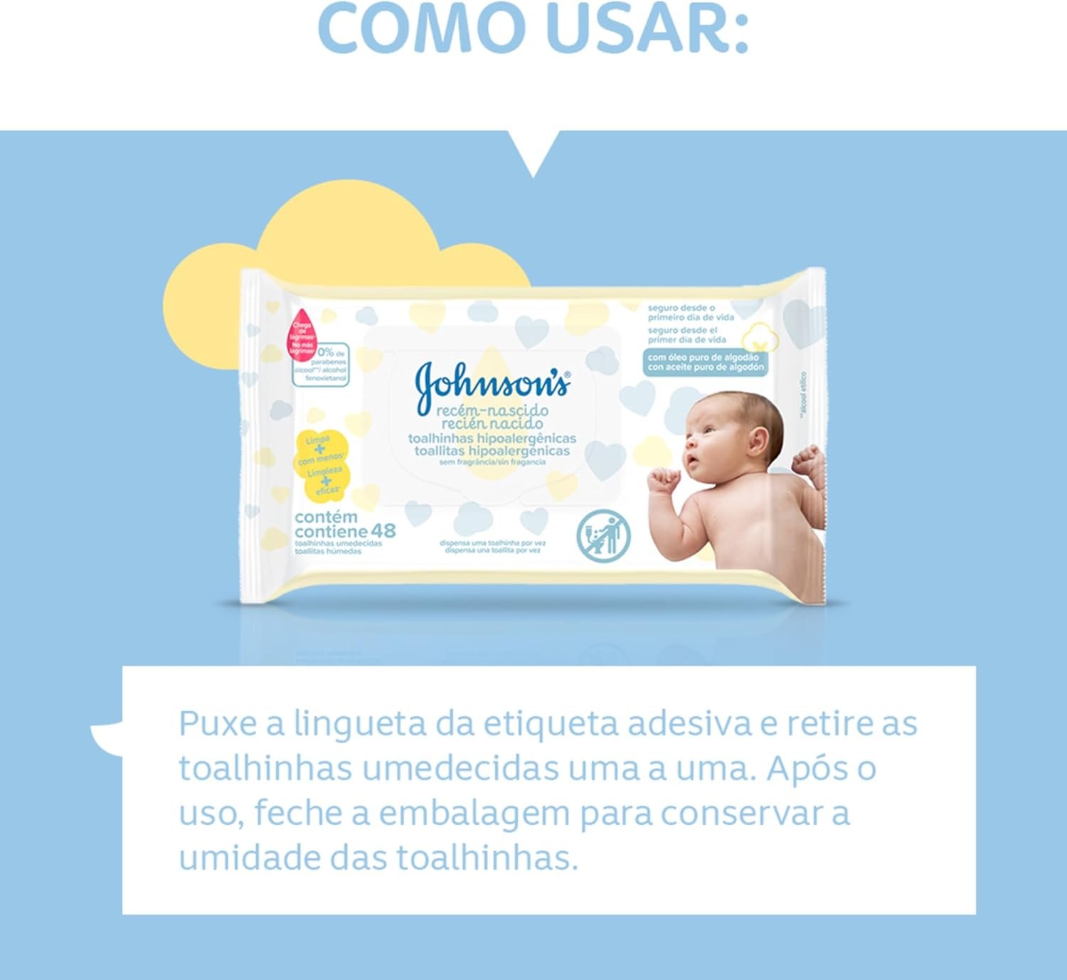 Lenços Umedecidos JOHNSON’S® Baby Recém Nascido, 48 unidadesLenços Umedecidos JOHNSON’S® Baby Recém Nascido, 48 unidades