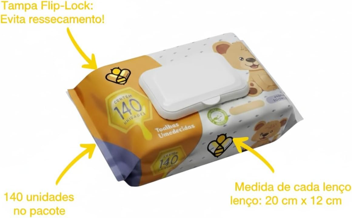 Lenços Umedecidos Toalhinhas ComTampa Kit 3 Pacotes com 140 Unidades CadaLenços Umedecidos Toalhinhas ComTampa Kit 3 Pacotes com 140 Unidades Cada